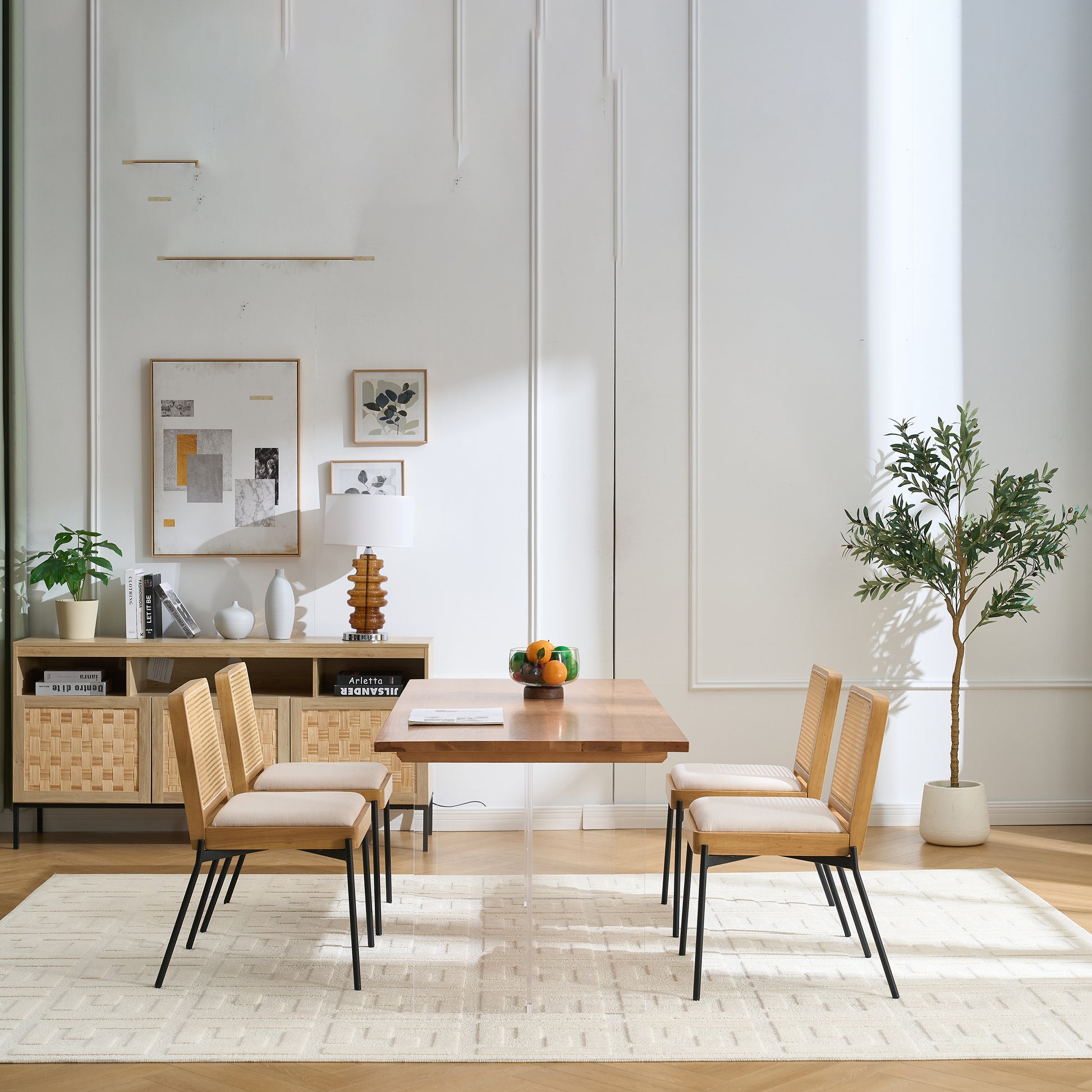 - Mid Century Style: Square rattan backrest add mid century country style to your home, create relaxed elegance for any space. The square padded seat cushion is linen upholstered, adding modern appeal to your kitchen.