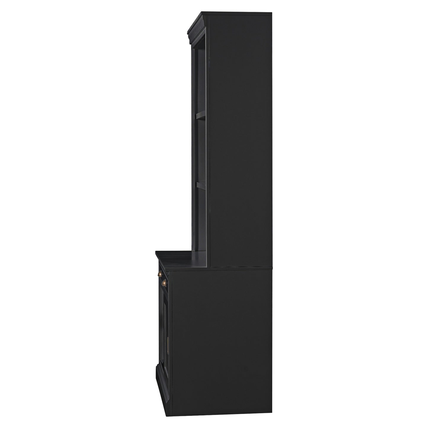 Open shelving features a fixed shelf and adjustable shelf to meet your storage needs.