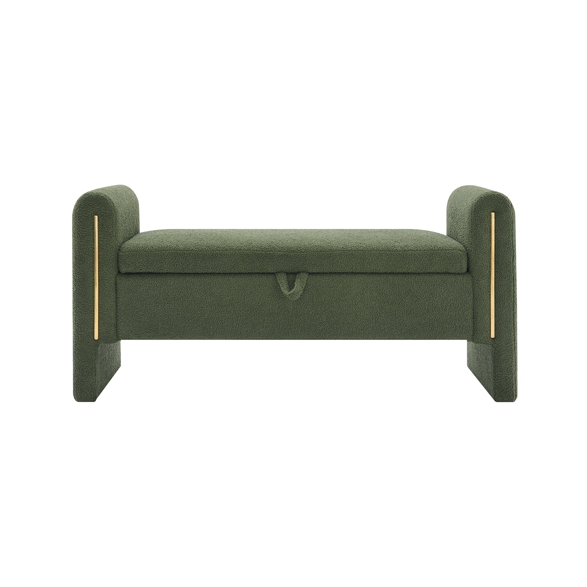 Modern Teddy Bed End Bench with Arms and Storage,Upholstered Large Foot Rest Stool, Comfy Window Vanity Bench for Living Room,Bedroom,Dorm,Coffee Table,Teddy Olive Green