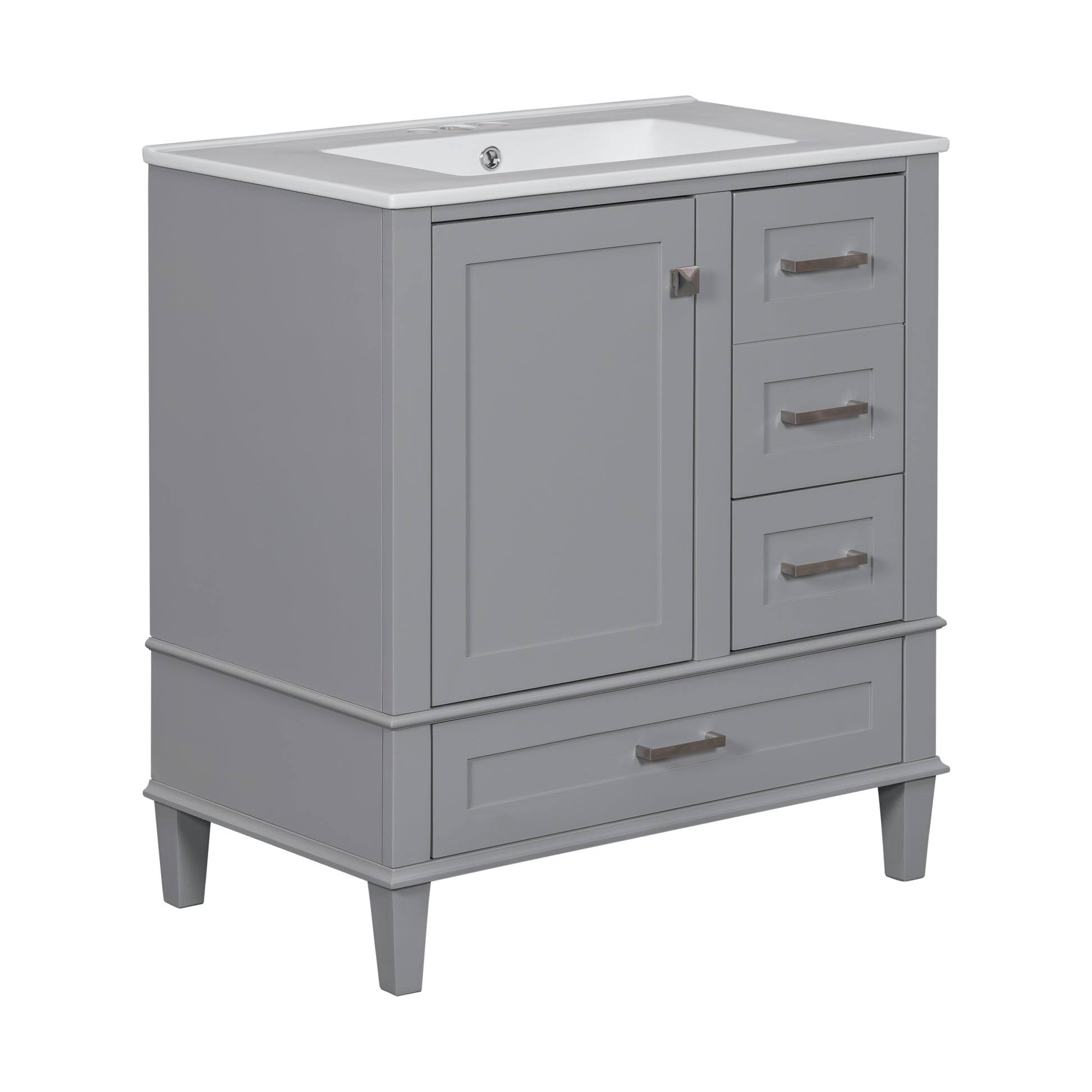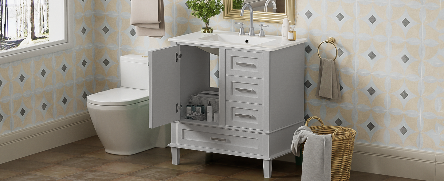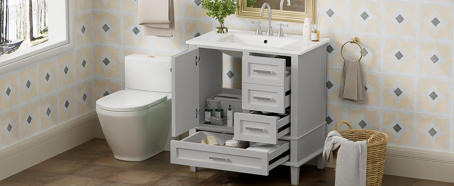 30' Bathroom Vanity , Modern Bathroom Cabinet with Sink Combo Set, Bathroom Storage Cabinet with a Soft Closing Door and 3 Drawers, Solid Wood Frame(Grey)