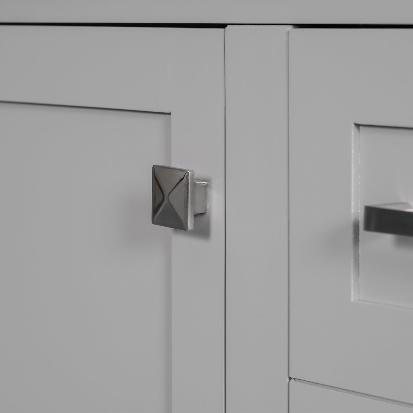 - [Elegantly Modern Design]The grey cabinet with a white countertop creates a refreshing color combination that catches the eye. Its sleek lines and sliver handles add a modern touch, enhancing the aesthetics of your bathroom.