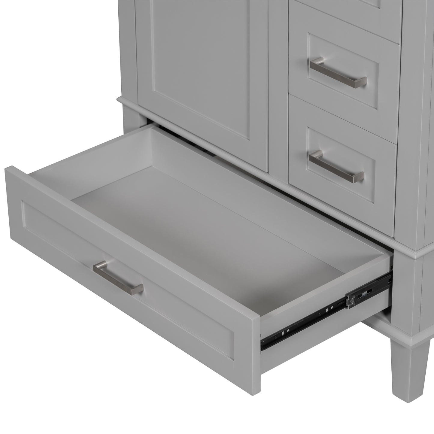 Our cabinet features three drawers and a soft-close door. Drawers come in different depths and widths to meet your various storage needs. The combination of the cabinet body and the drawer perfectly stores all kinds of bathroom products, keeping daily necessities away from water stains and dust.