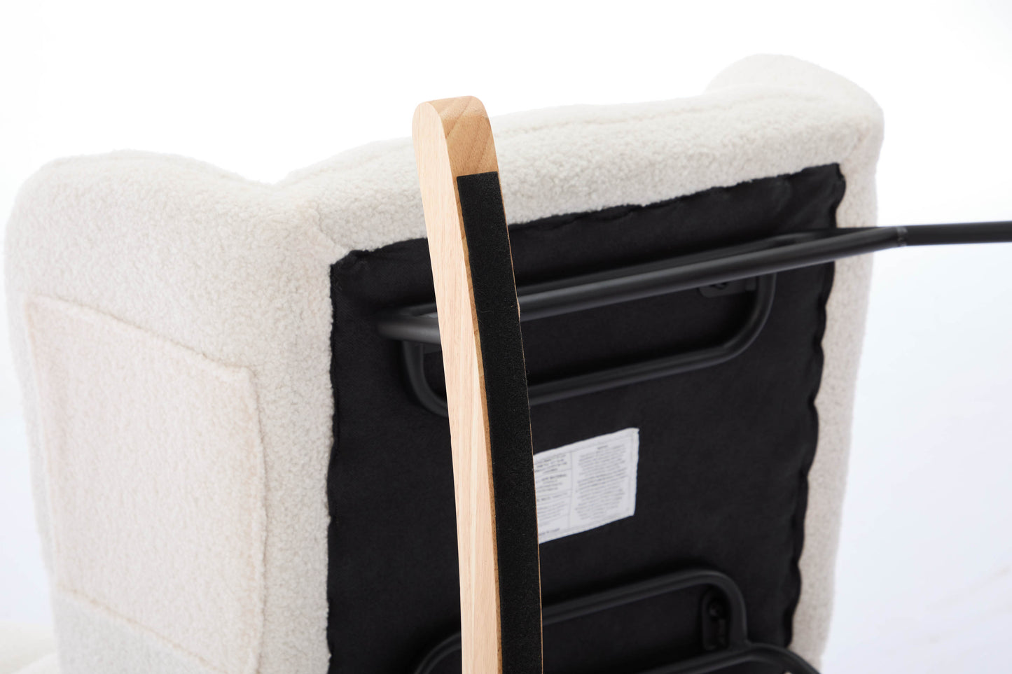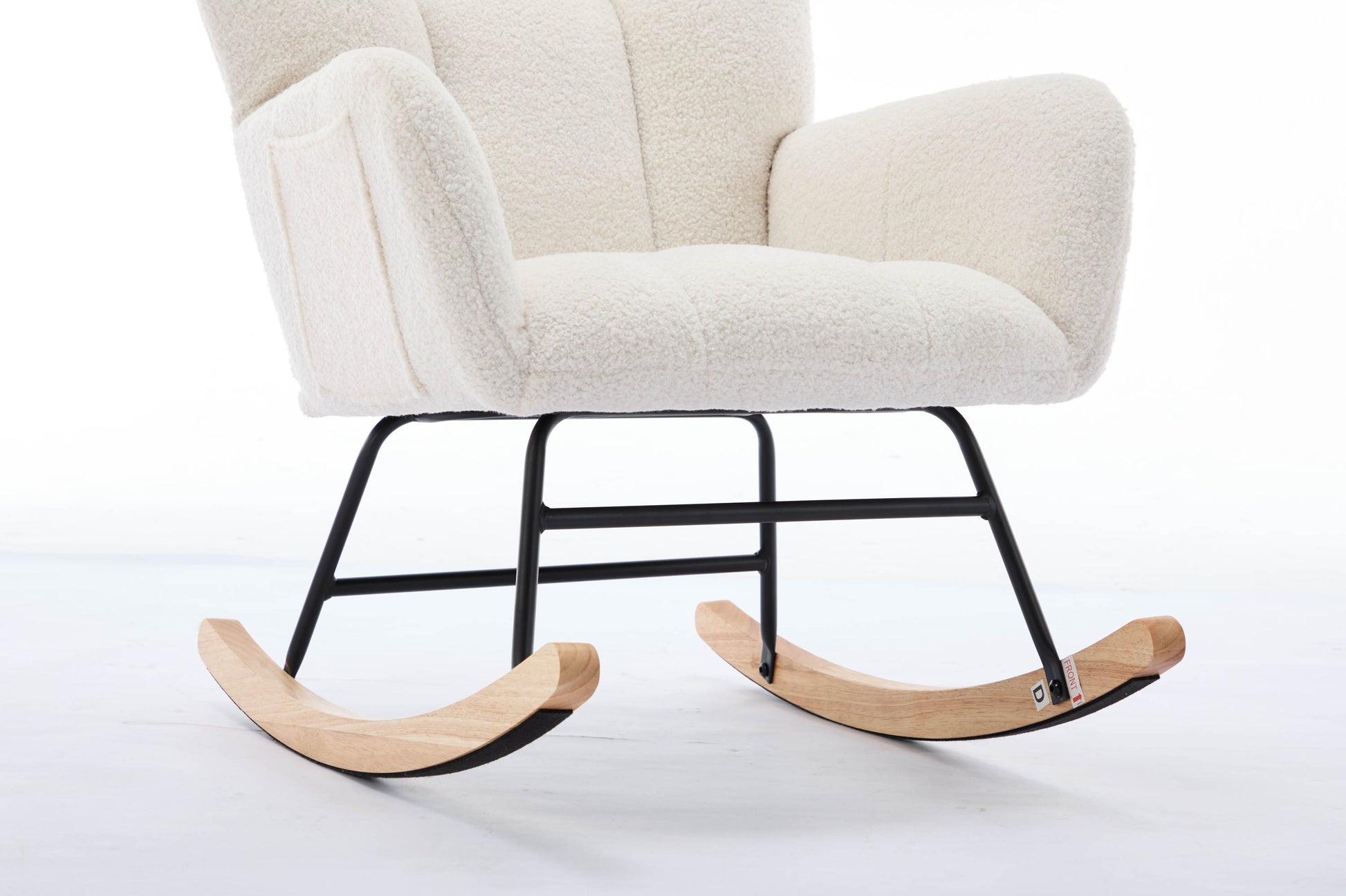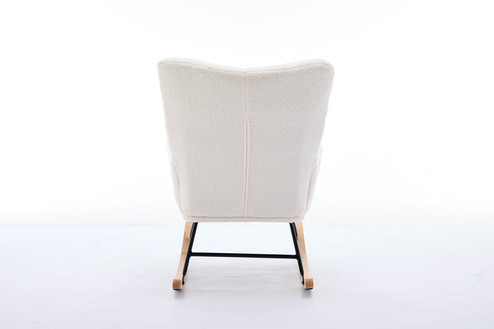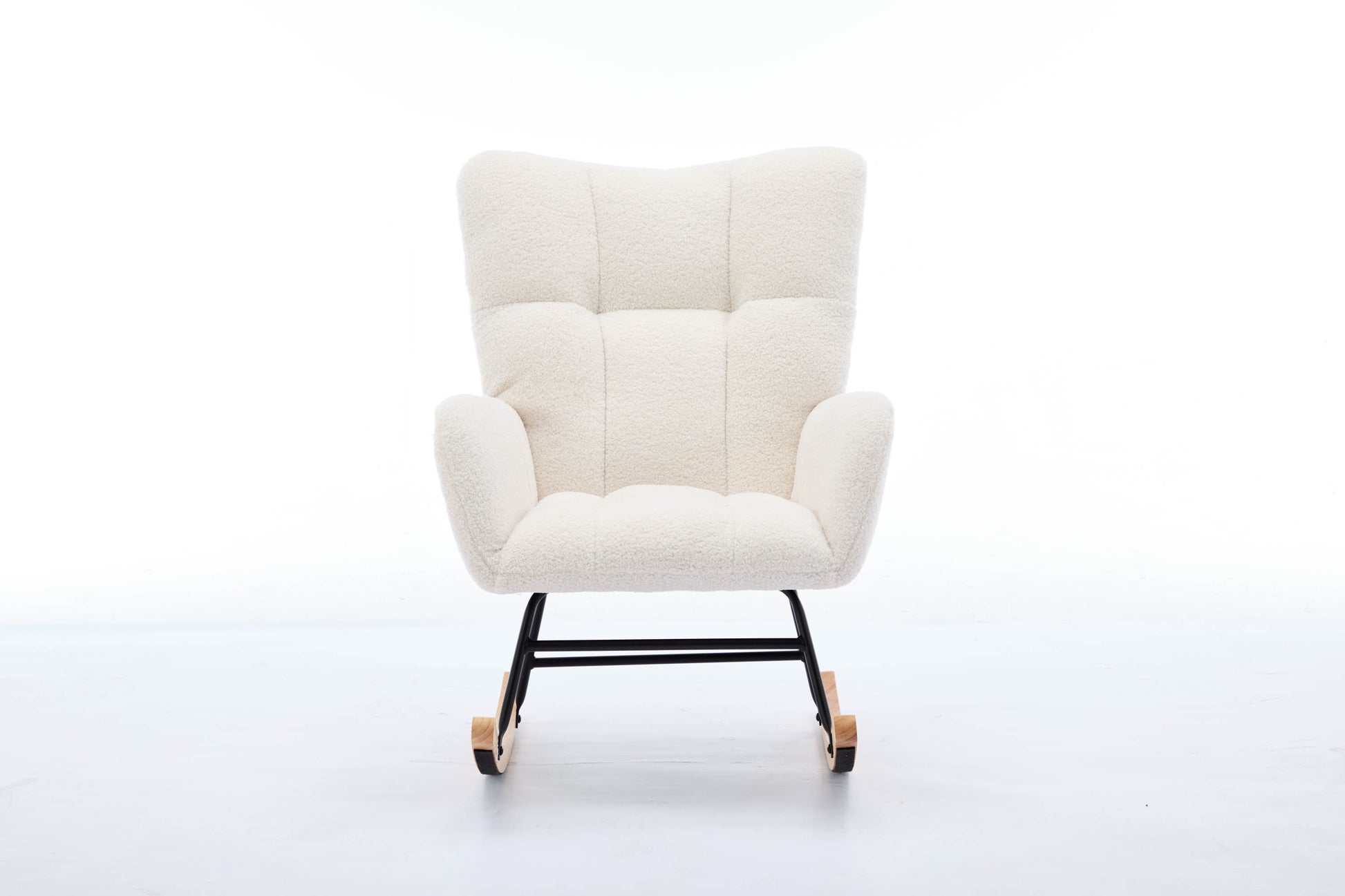 Modern Nursery Rocking Chair Upholstered Glider Chair with High Backrest Rocker Accent Armchair with Solid Wood Legs for Nursery Bedroom Living Room Teddy (white)