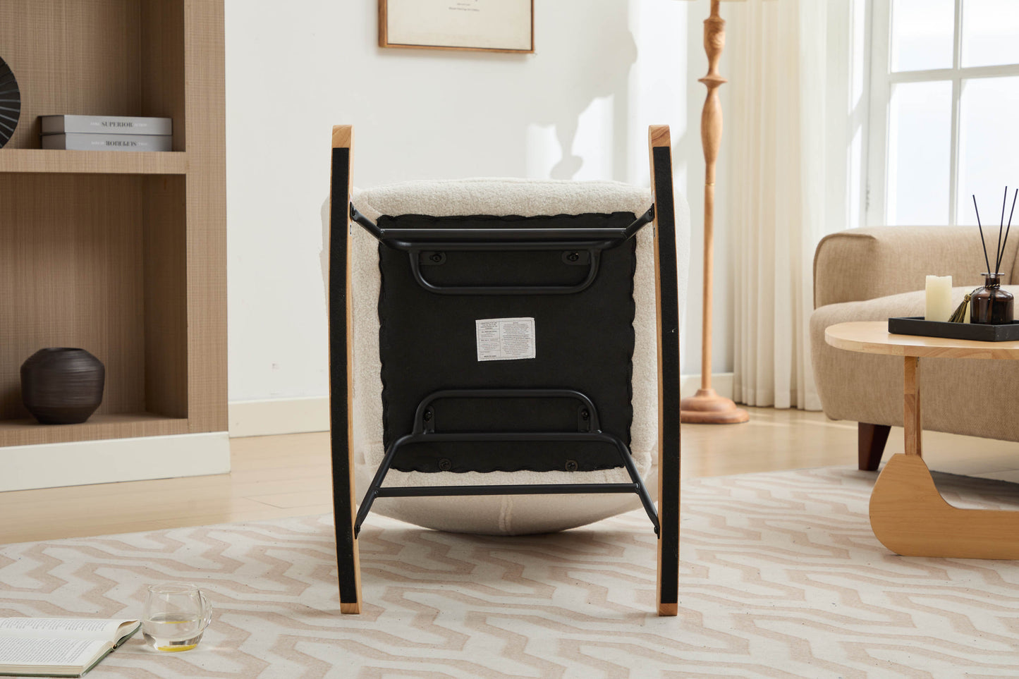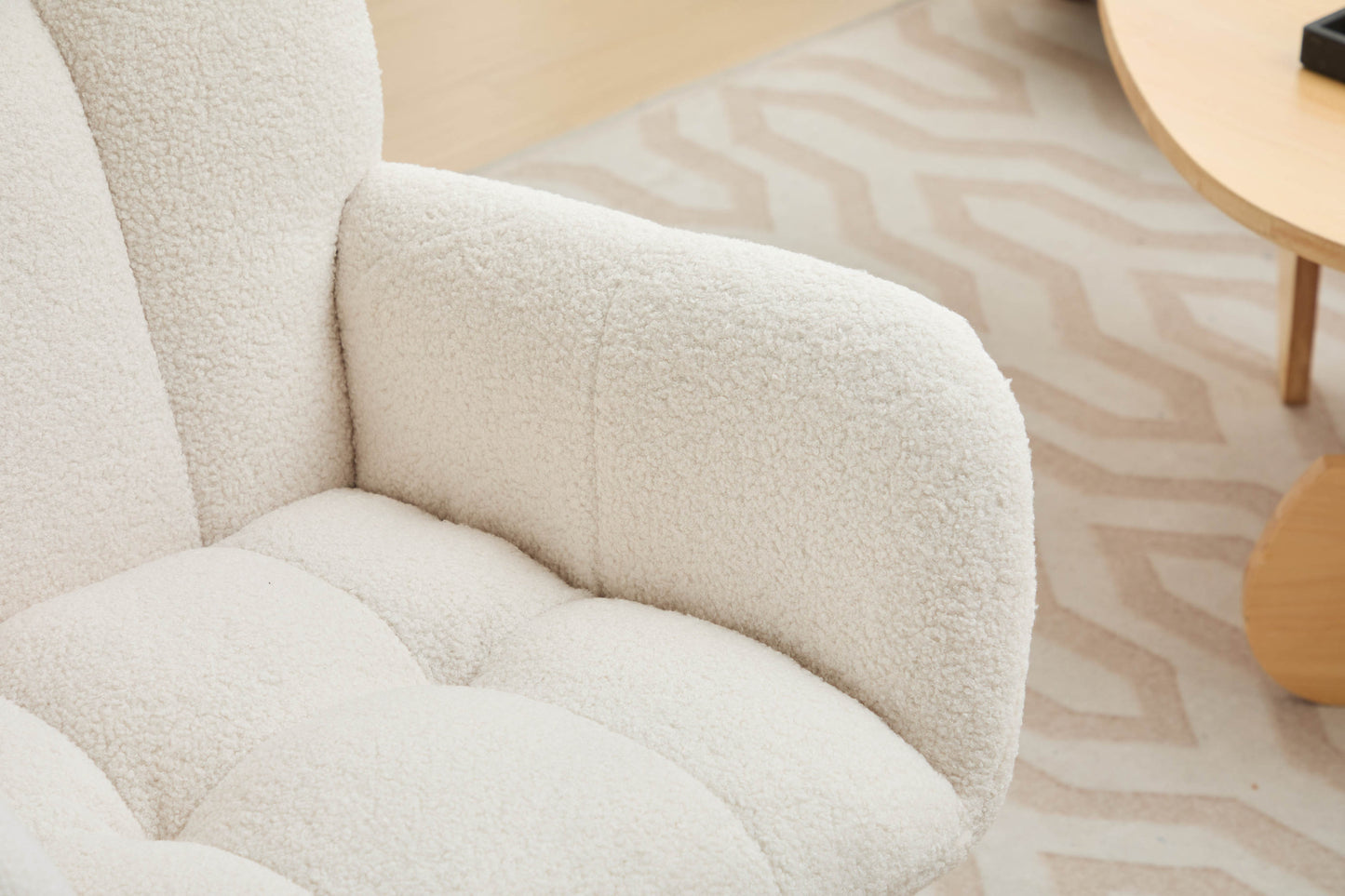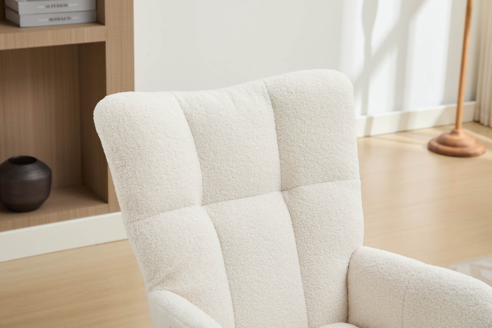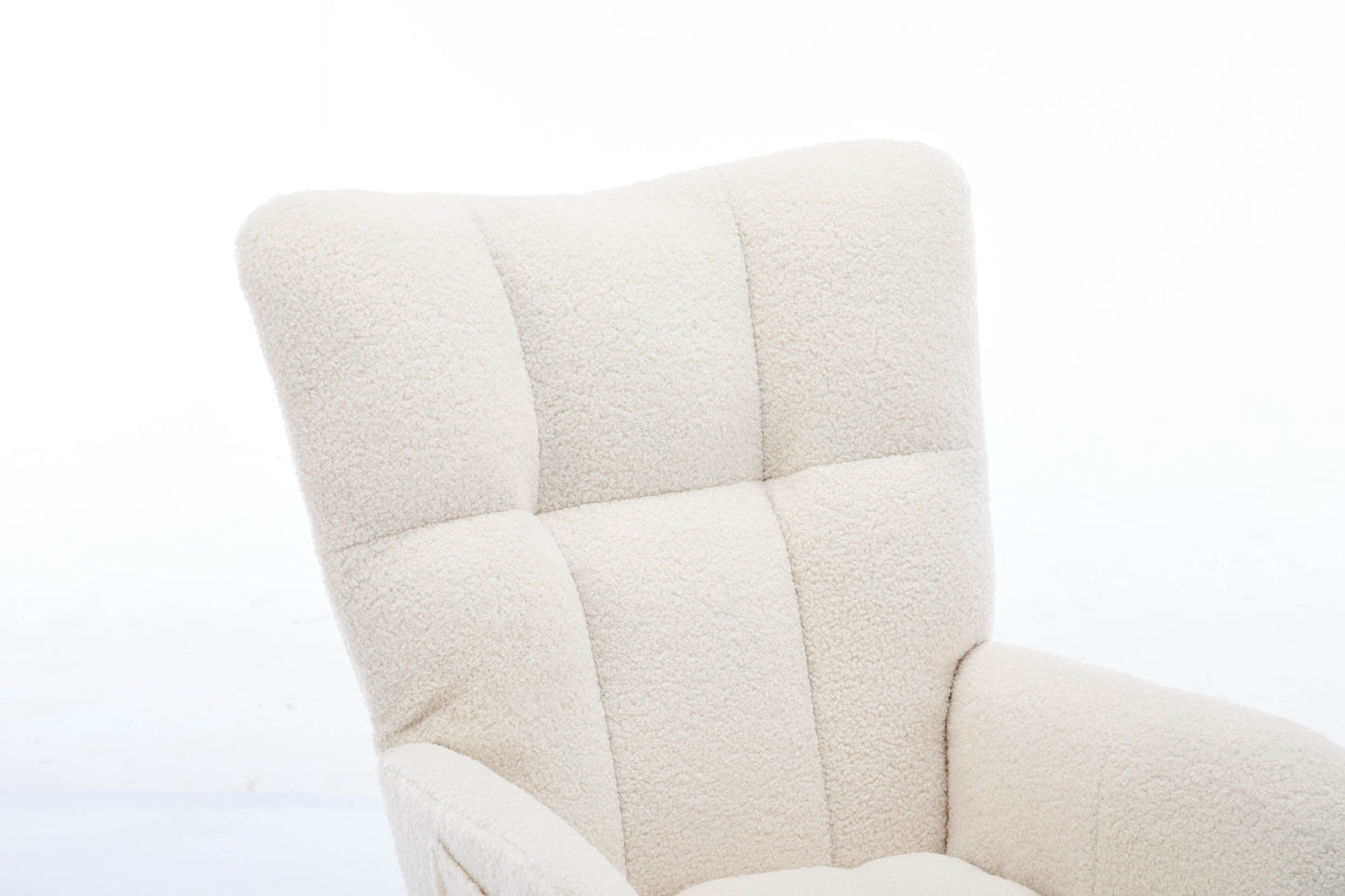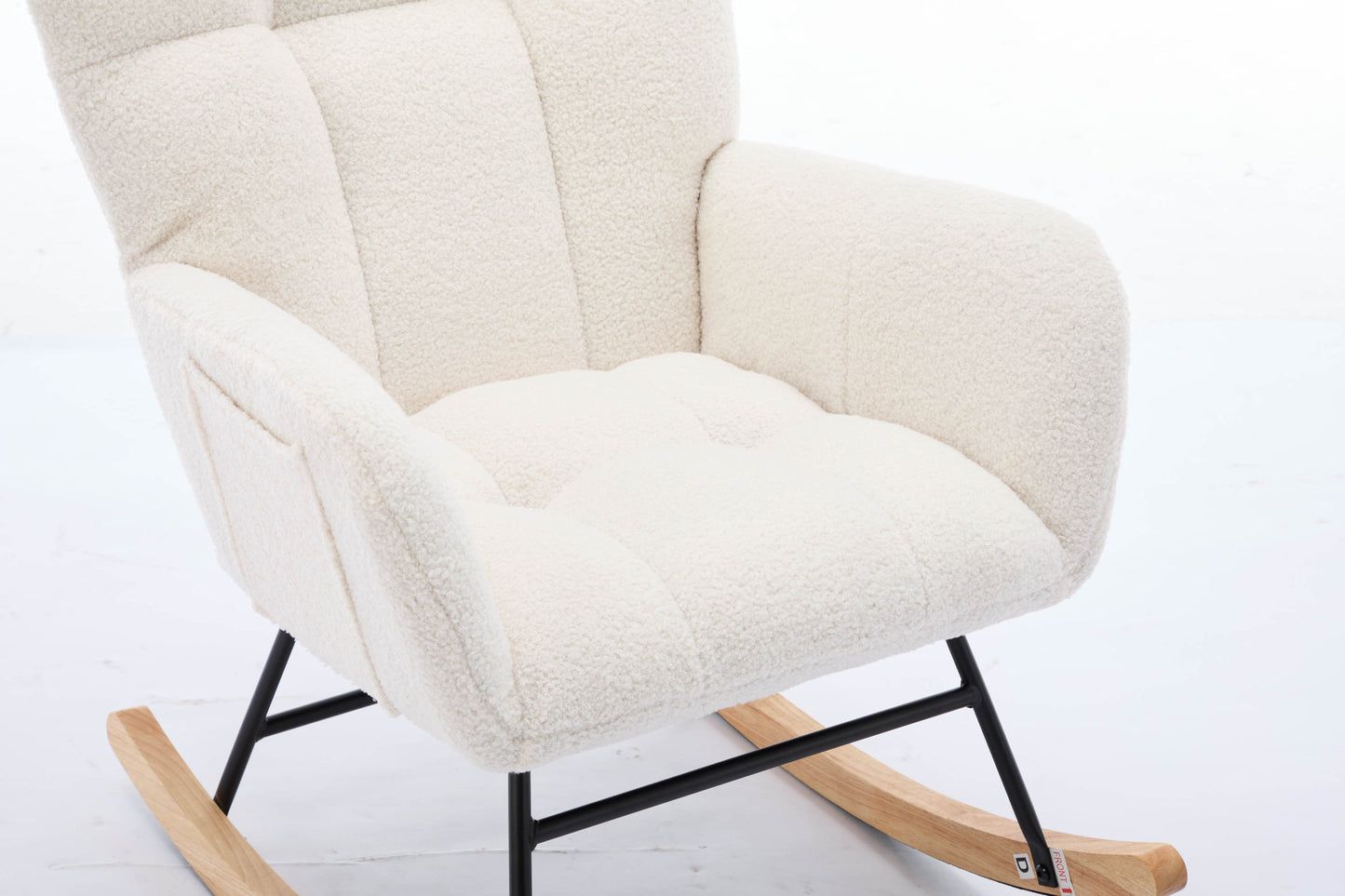 Modern Nursery Rocking Chair Upholstered Glider Chair with High Backrest Rocker Accent Armchair with Solid Wood Legs for Nursery Bedroom Living Room Teddy (white)