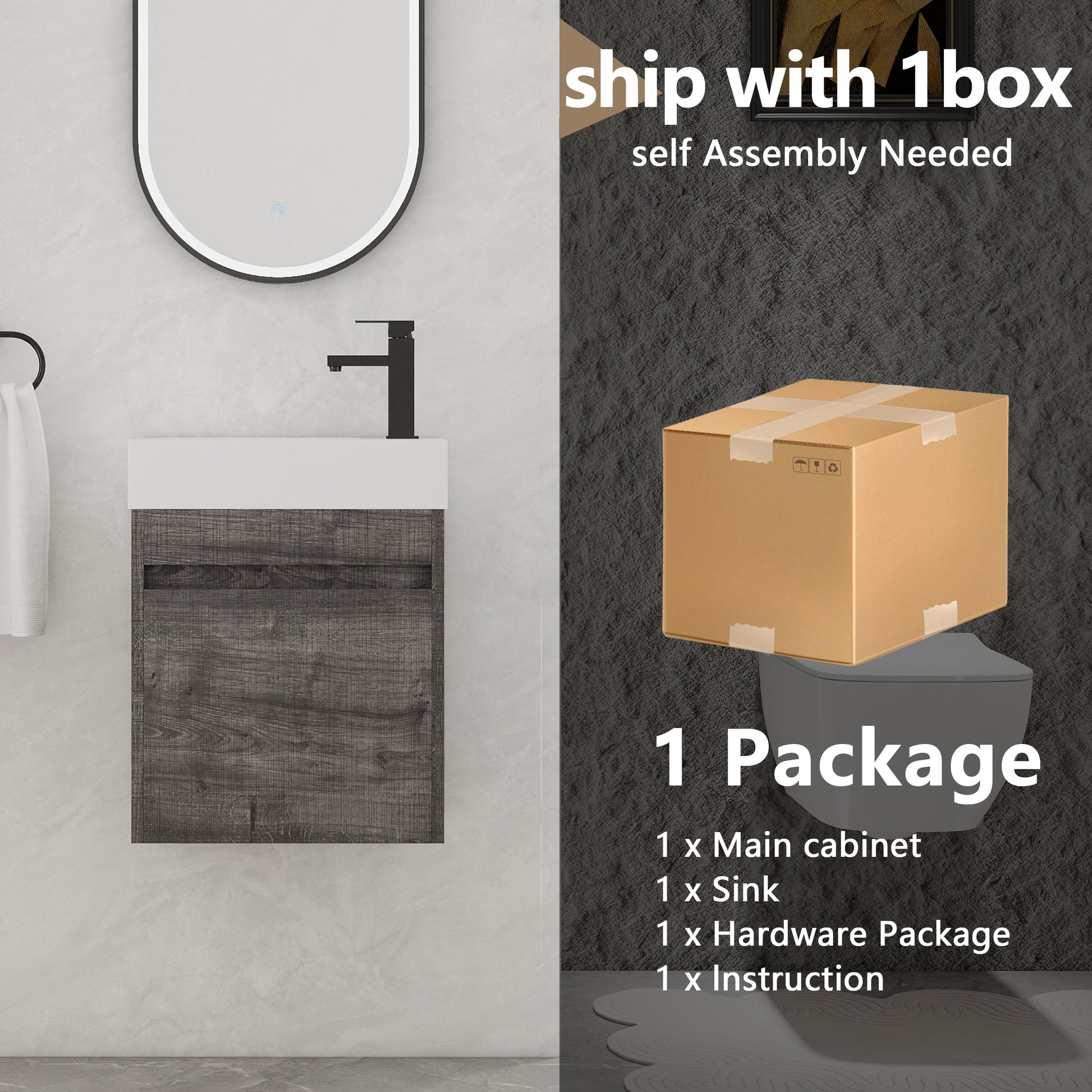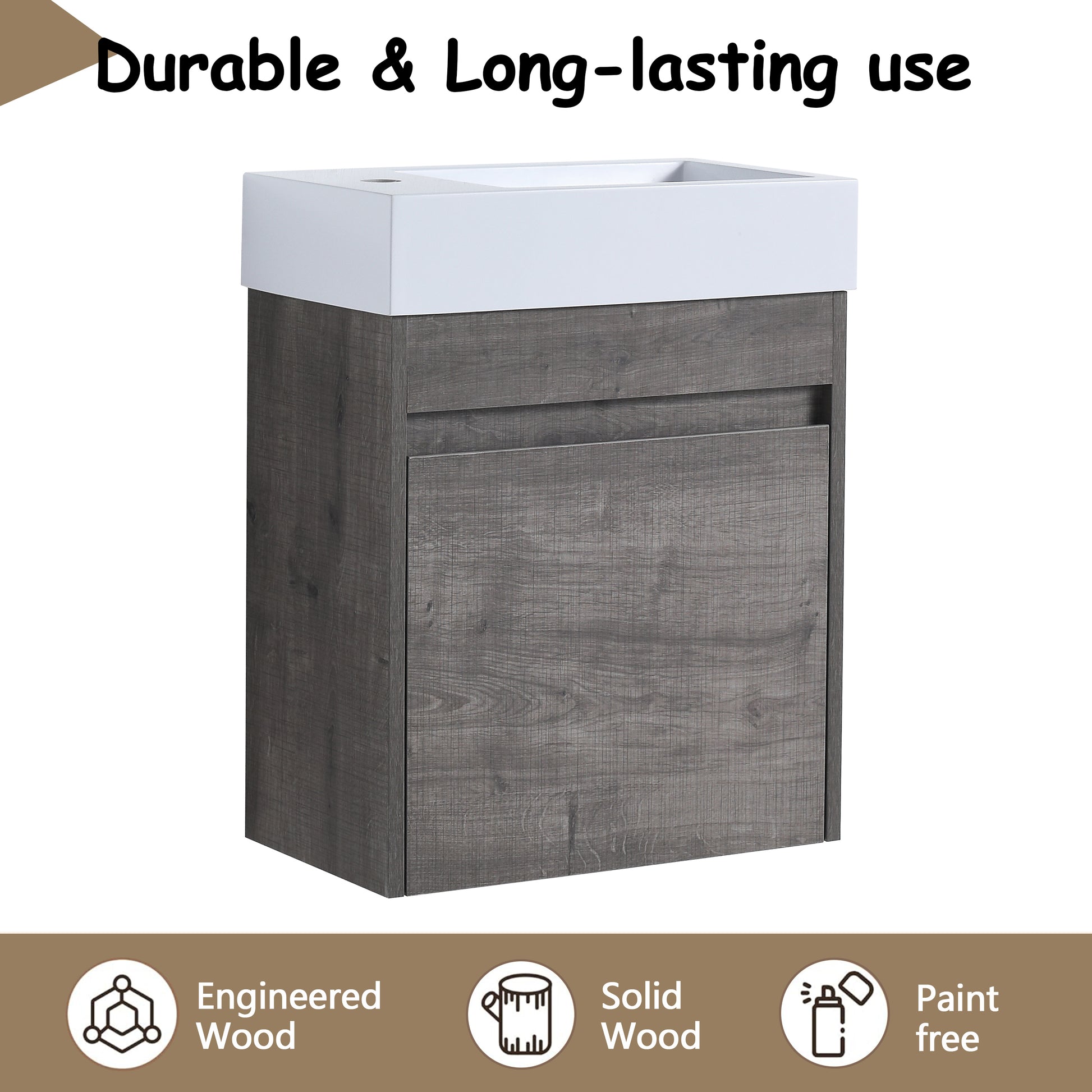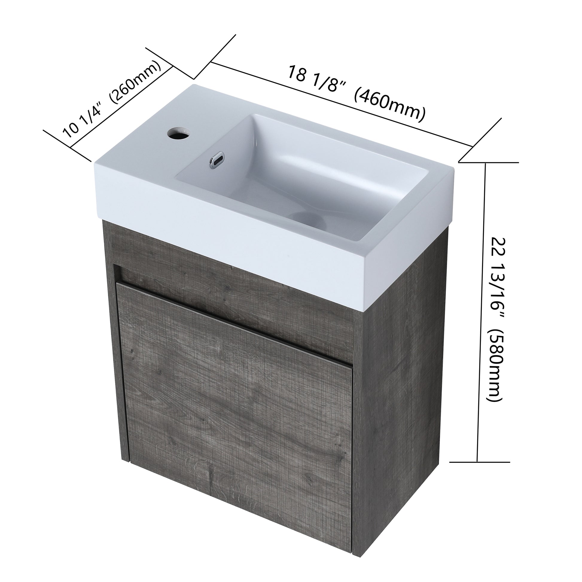 18'' Floating Wall-Mounted Bathroom Vanity with White Resin Sink & Soft-Close Cabinet Door
