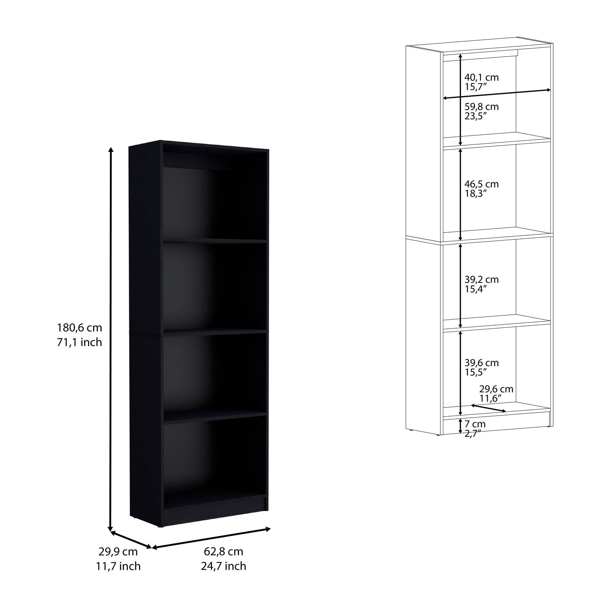 Vinton Bookcase with Spacious Tier-Shelving Design, Black