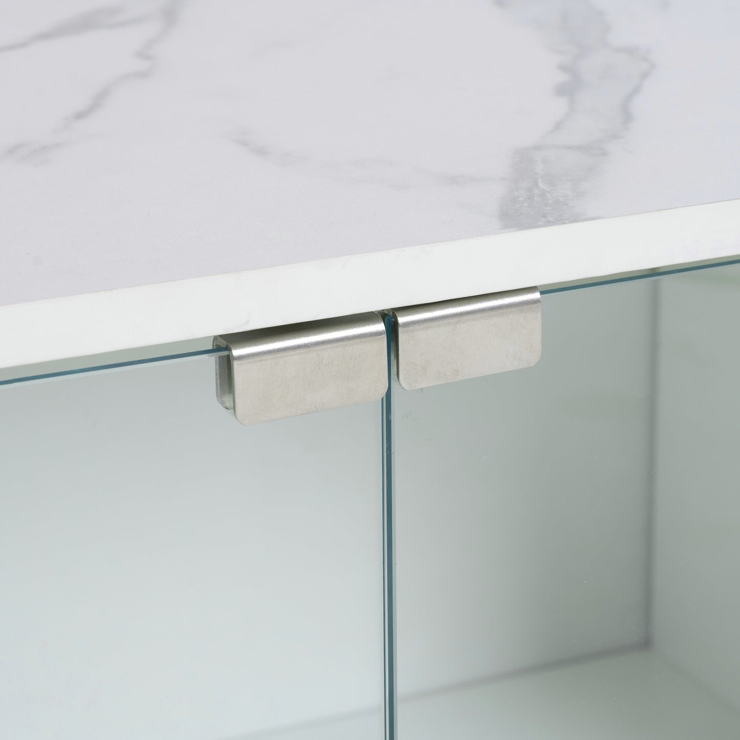 With its simple rectangular appearance, this TV stand adds a touch of modern orderly comfort to your living space. Meanwhile the spacious imitation marble tabletop also provides elegant and high-end visual experience, Which will complement various home styles.