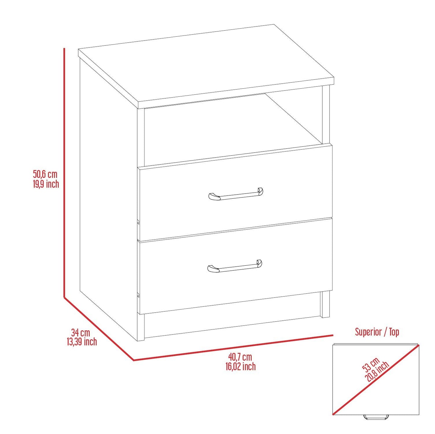 This nightstand enhances your bedroom with a spacious top for books, phones, and decorative items. It also features a shelf and two drawers for extra storage, complemented by durable all-metal railings and pulls for lasting quality.
