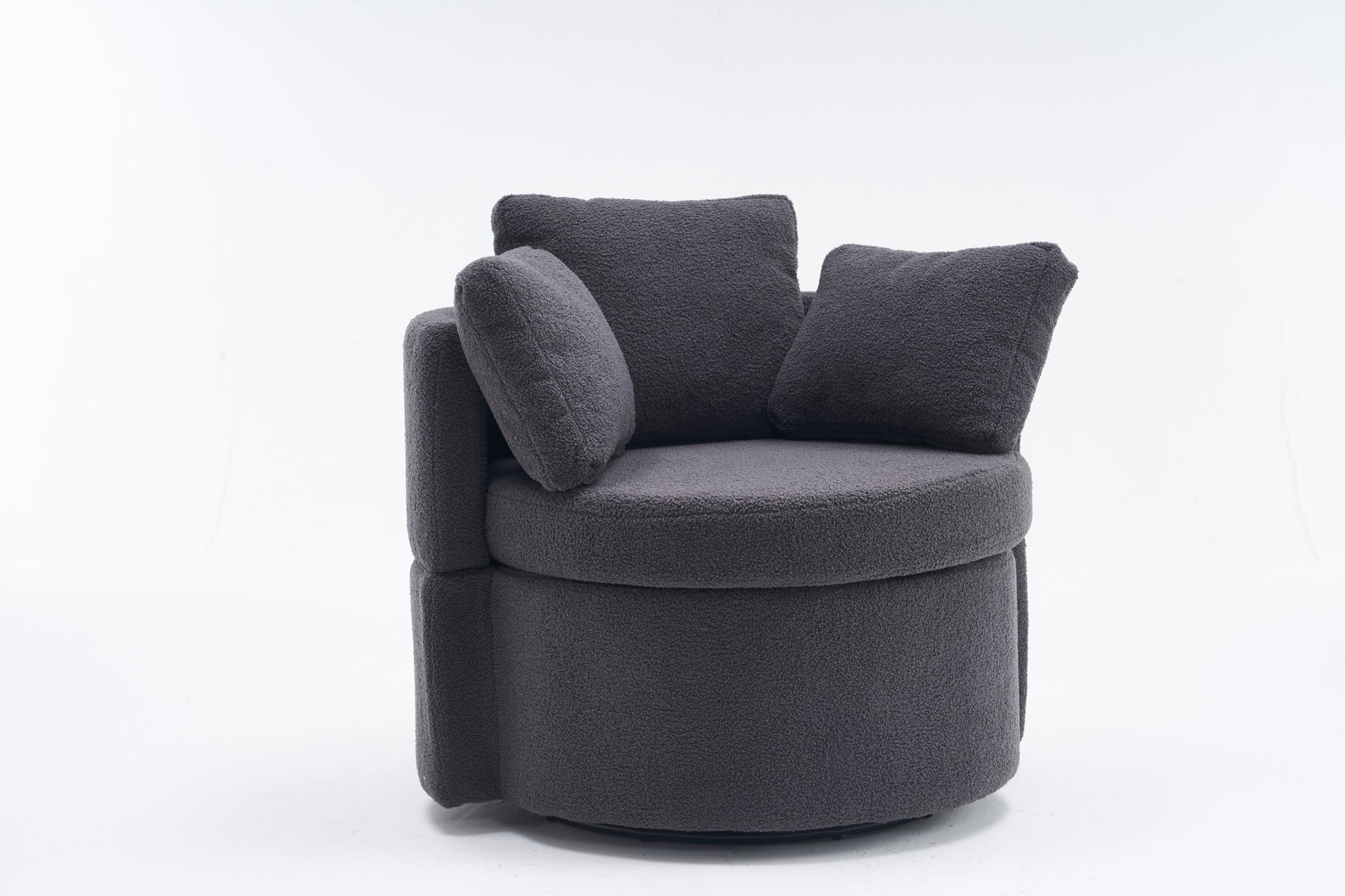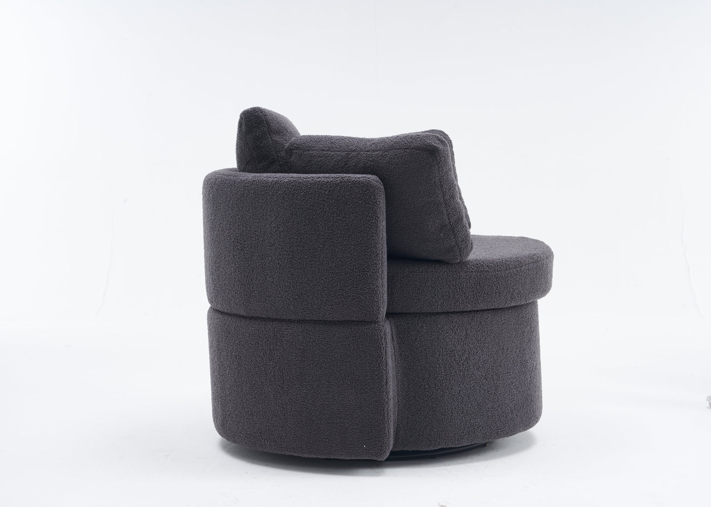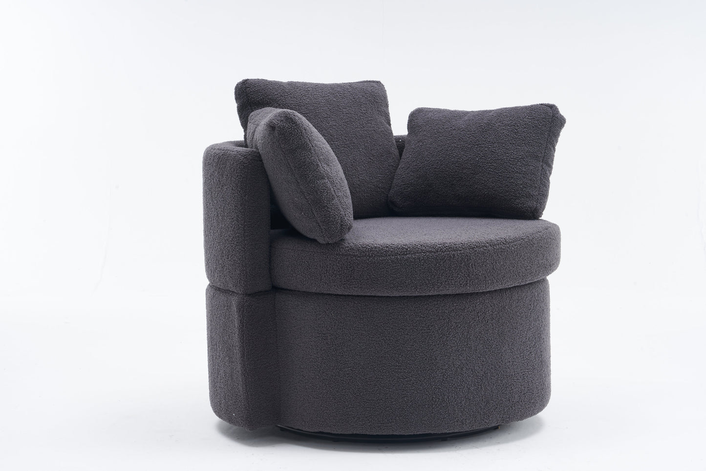 029-Teddy Fabric Swivel And Storage Chair With Back Cushion For Living Room,Dark Gray