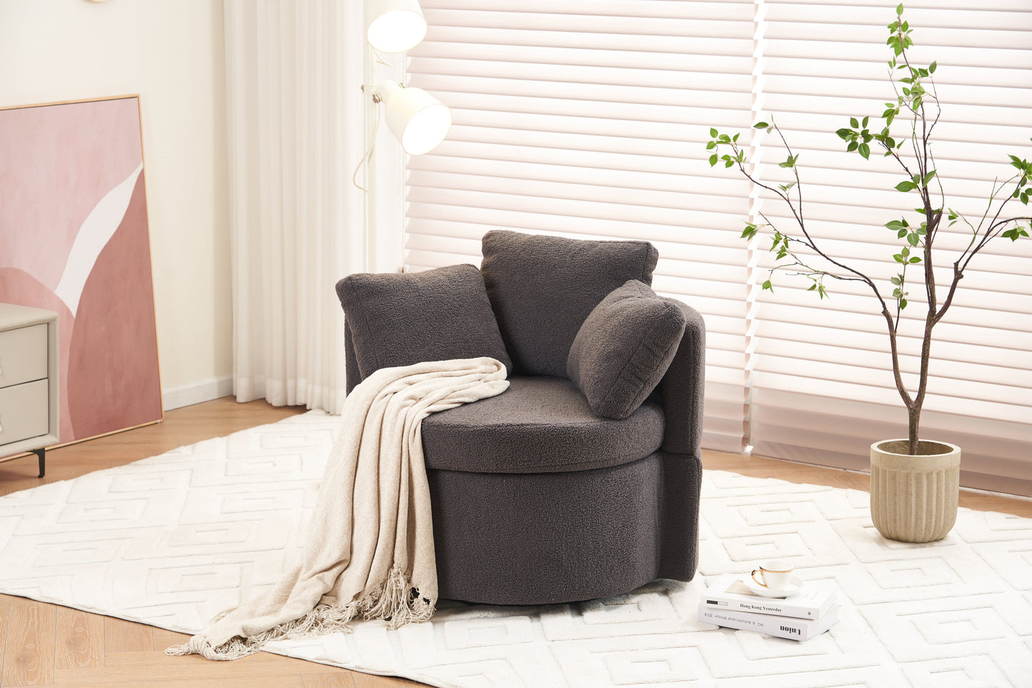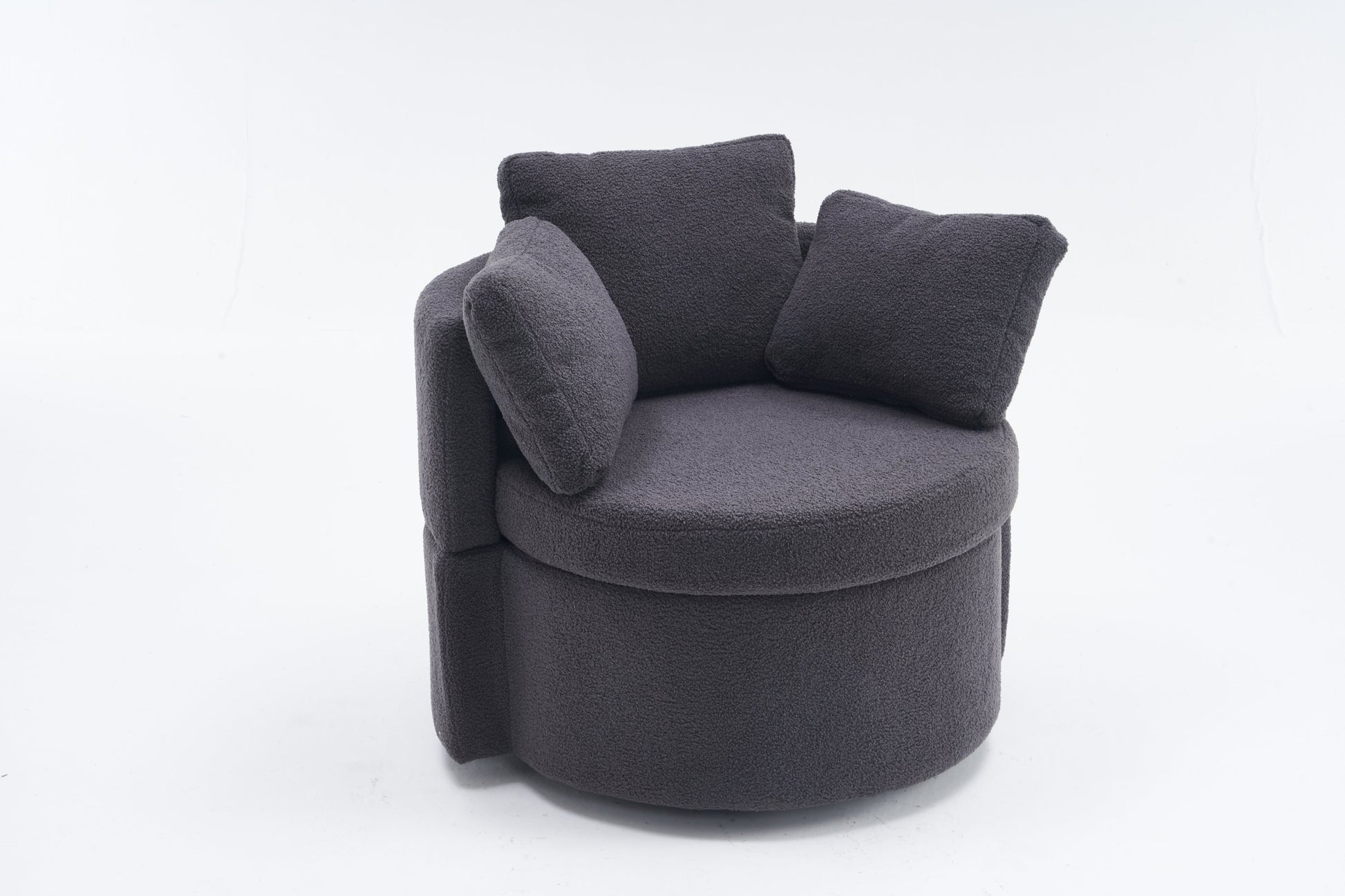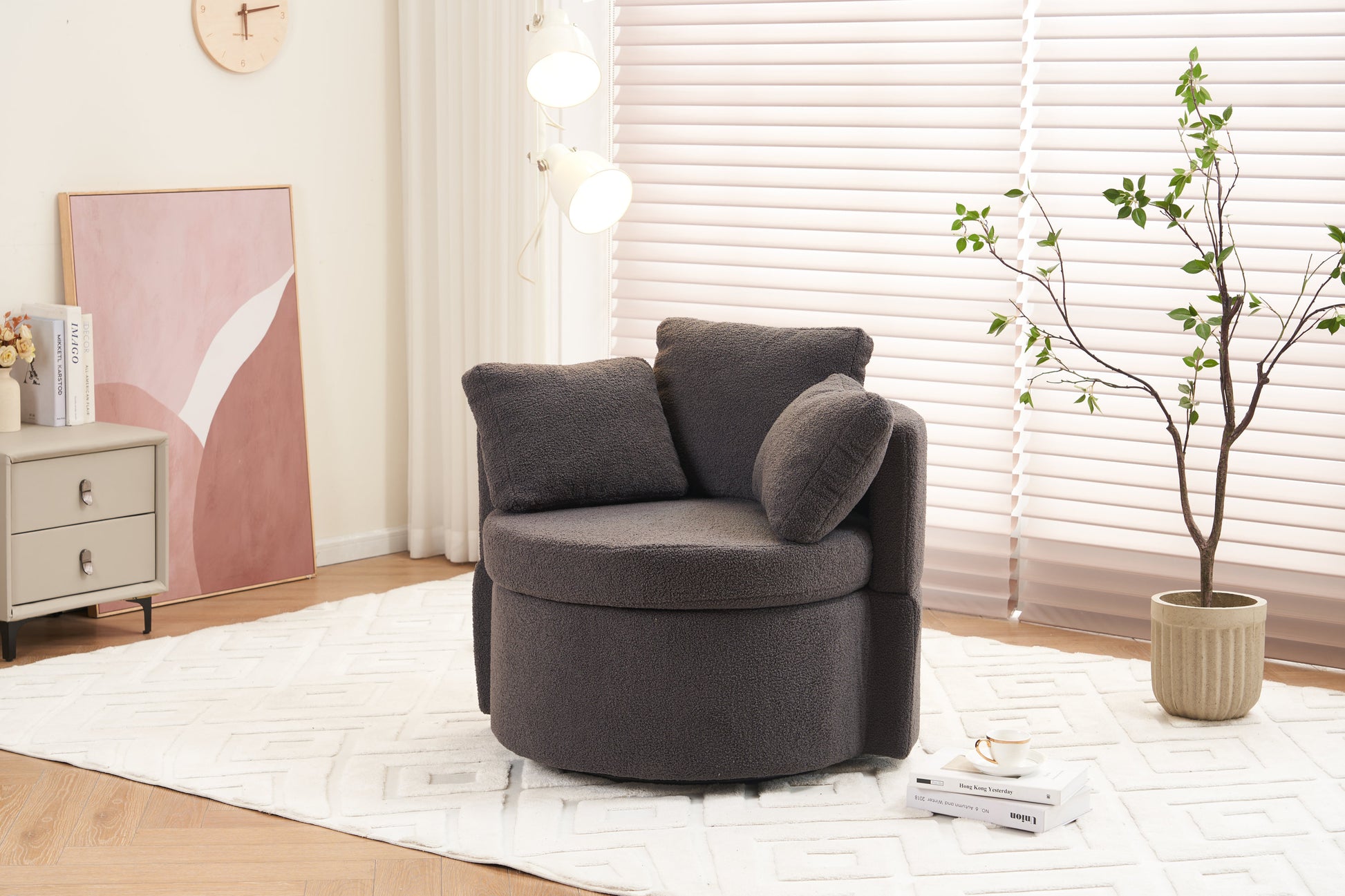 029-Teddy Fabric Swivel And Storage Chair With Back Cushion For Living Room,Dark Gray