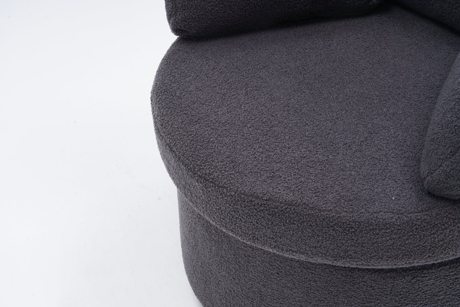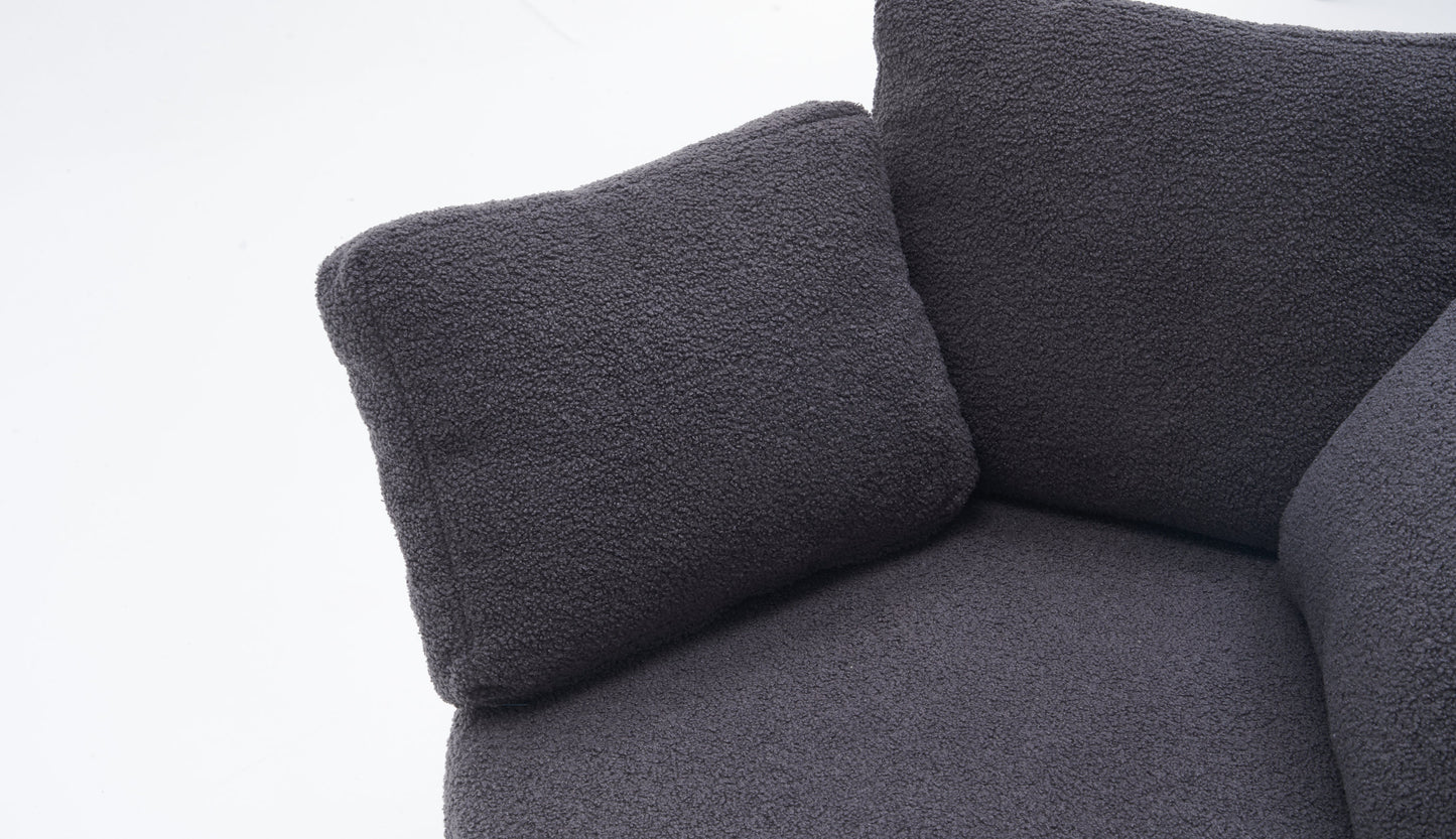 - Product Pomposition:Soft Teddy Fabric Material+Foam Filled+Wooden Frame+3 Throw Pillows+Storage+Black Point Round Swivel Base+Upholstered;
