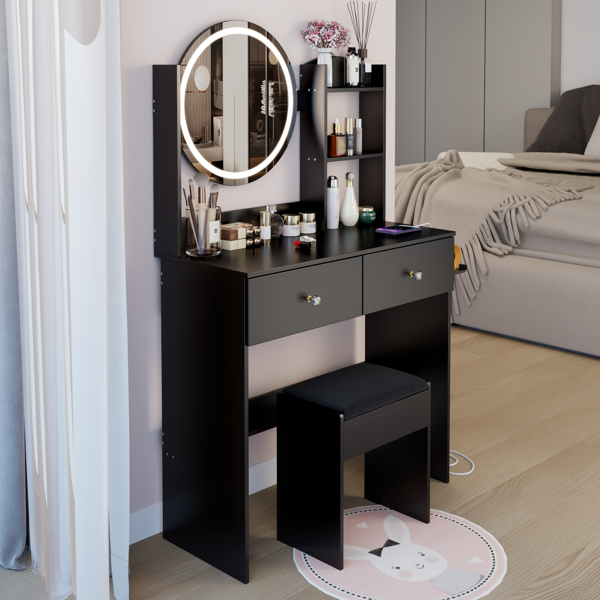 - [Including a dressing table and a cushioned dressing stool]: This is a dressing table set, which includes a dressing table and a cushioned stool. You will no longer need to make additional purchases. This will greatly save you time and delivery costs.