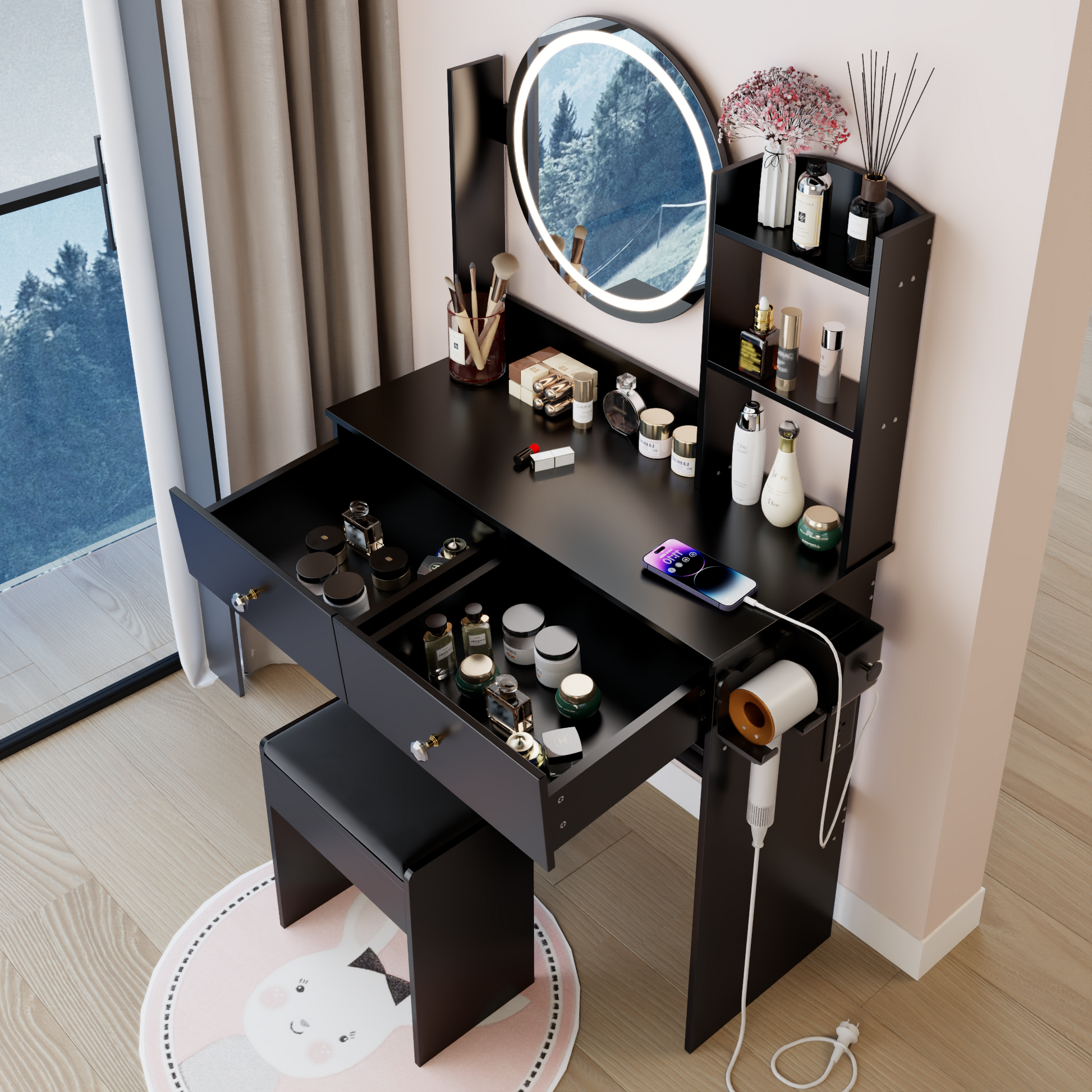 - [Built in 2 AC power ports, 1 USB port, and 1 TYPE C fast charging port]: Equipped with a built-in socket, including 2 AC power ports, 1 USB port, and 1 TPYE C fast charging port, it can easily charge your mobile phone or tablet. Two AC power ports allow you to use curling iron and hair dryer simultaneously while you make up.