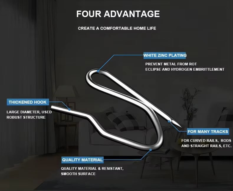 60pcs Curtain Hooks Window Shower Drapery Hook Accessories Heavy Duty Metal Curtain Pin Hooks for Pencil Pleat Curtains