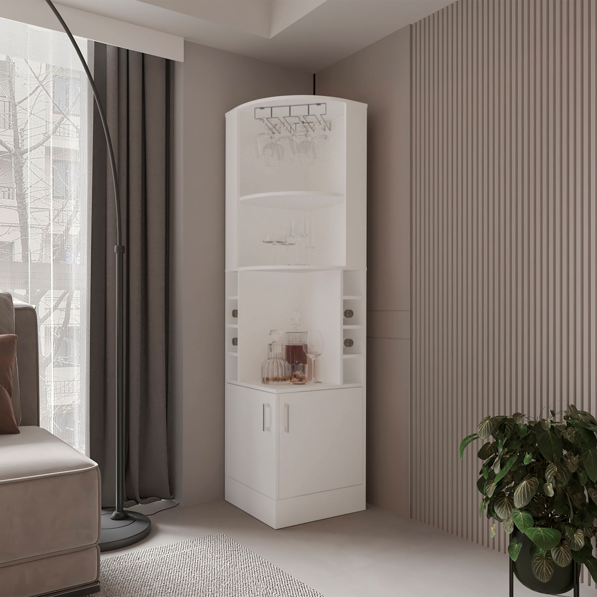 Page Corner Bar Cabinet with Wine Storage and Glass Rack, White