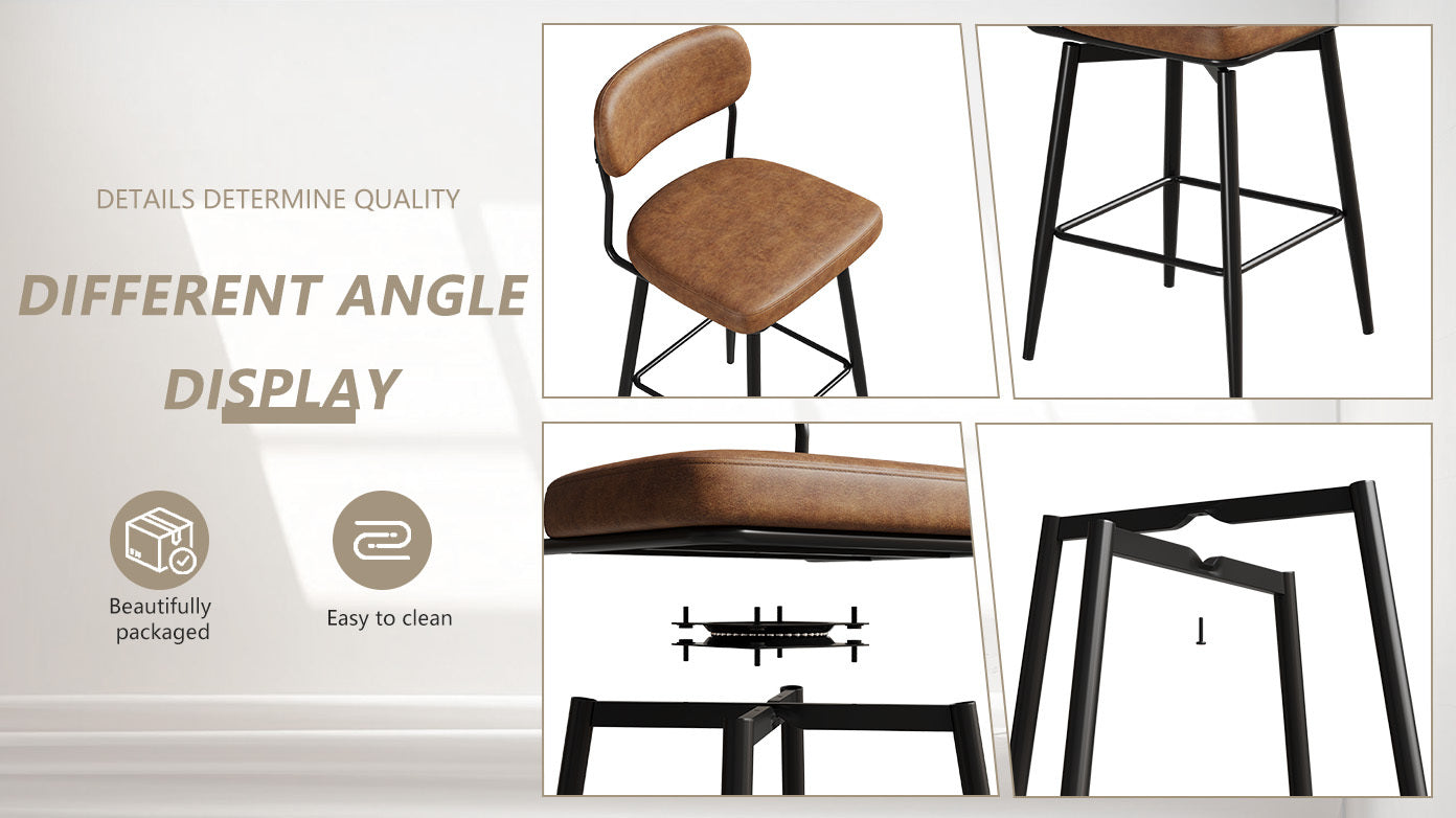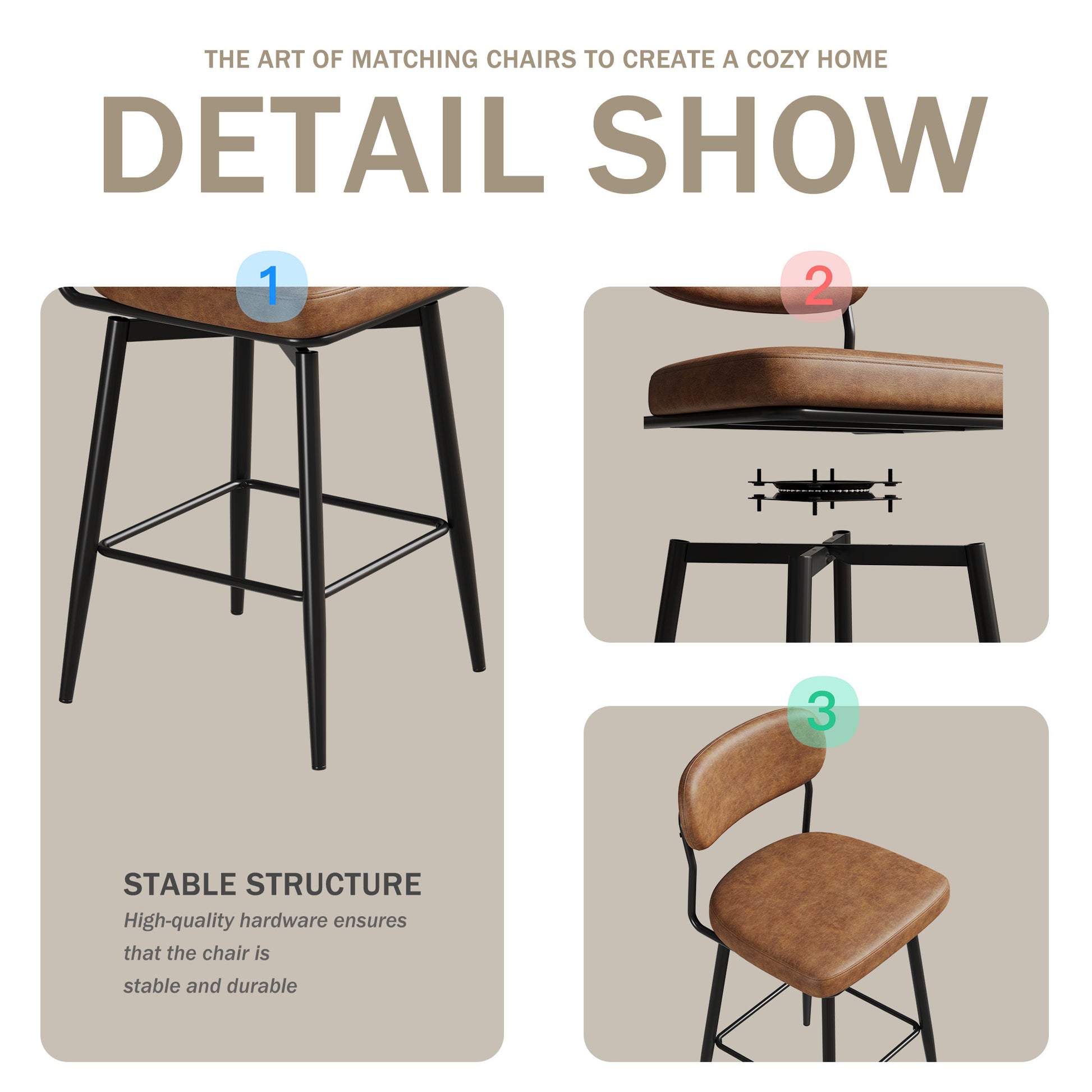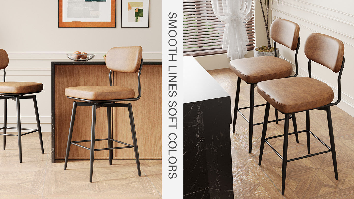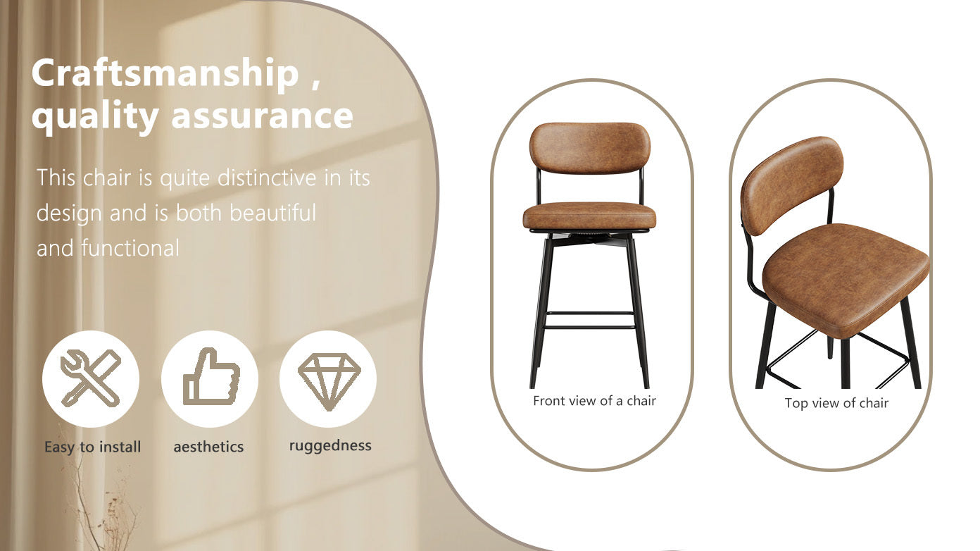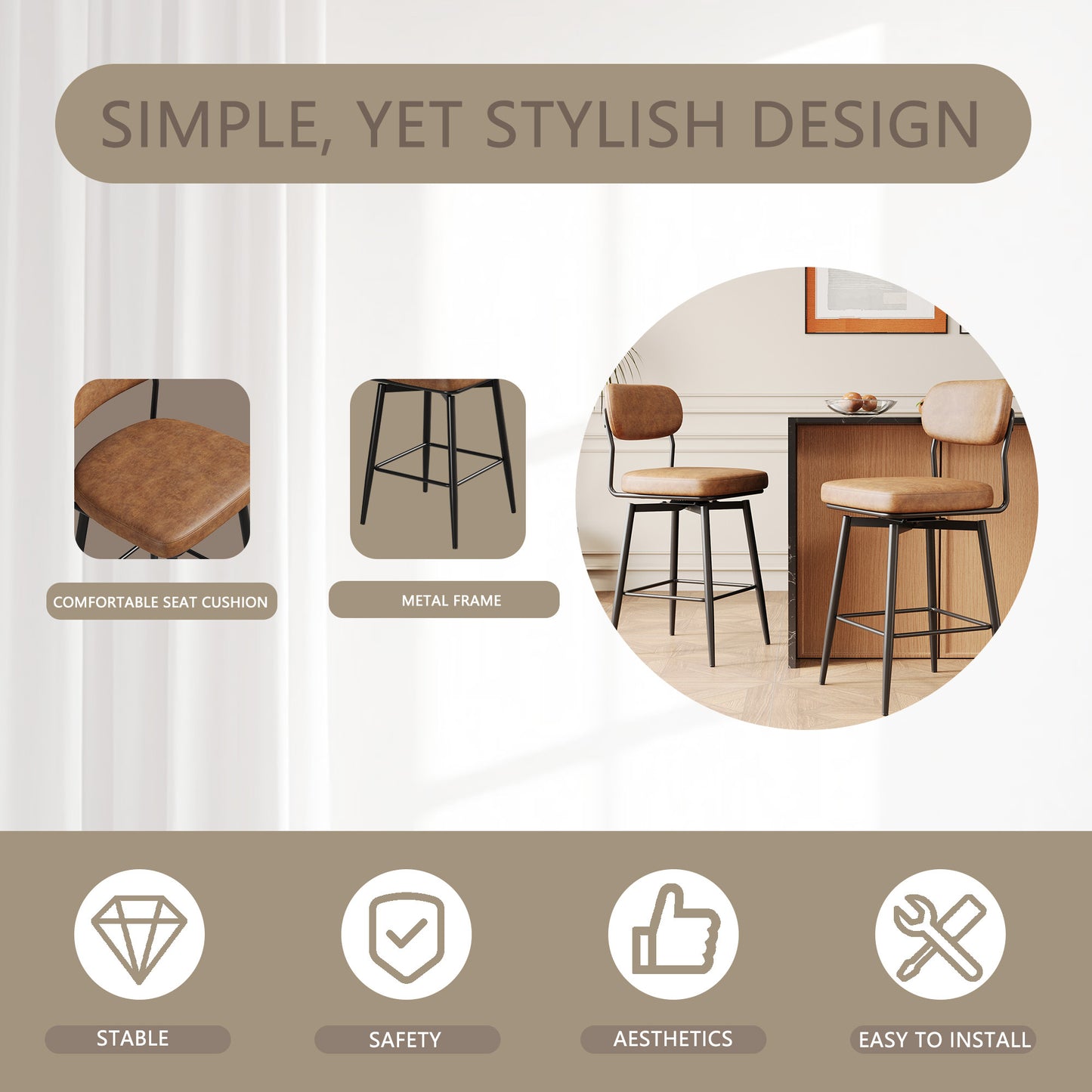 360 ° Rotating Bar Chair Bar Stool bar stools set of 2 piece set with leather cushions and iron brackets, suitable for various places such as home kitchens, restaurants, offices, etc.