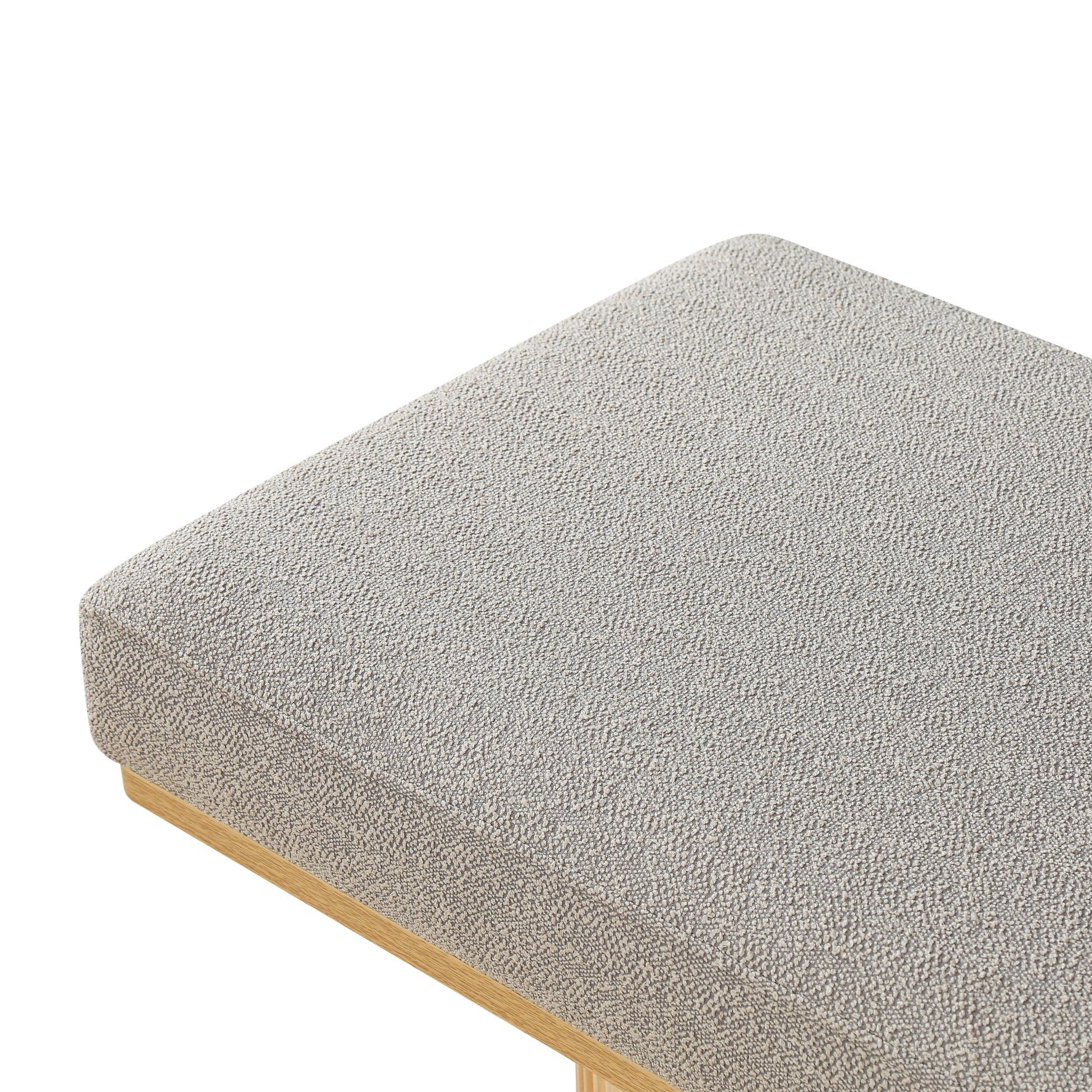 Upholstered Bench with Chunky Legs Light Grey Boucle Fabric Contemporary Style Bed-end Bench for Bedroom Living Room, Natural Wood