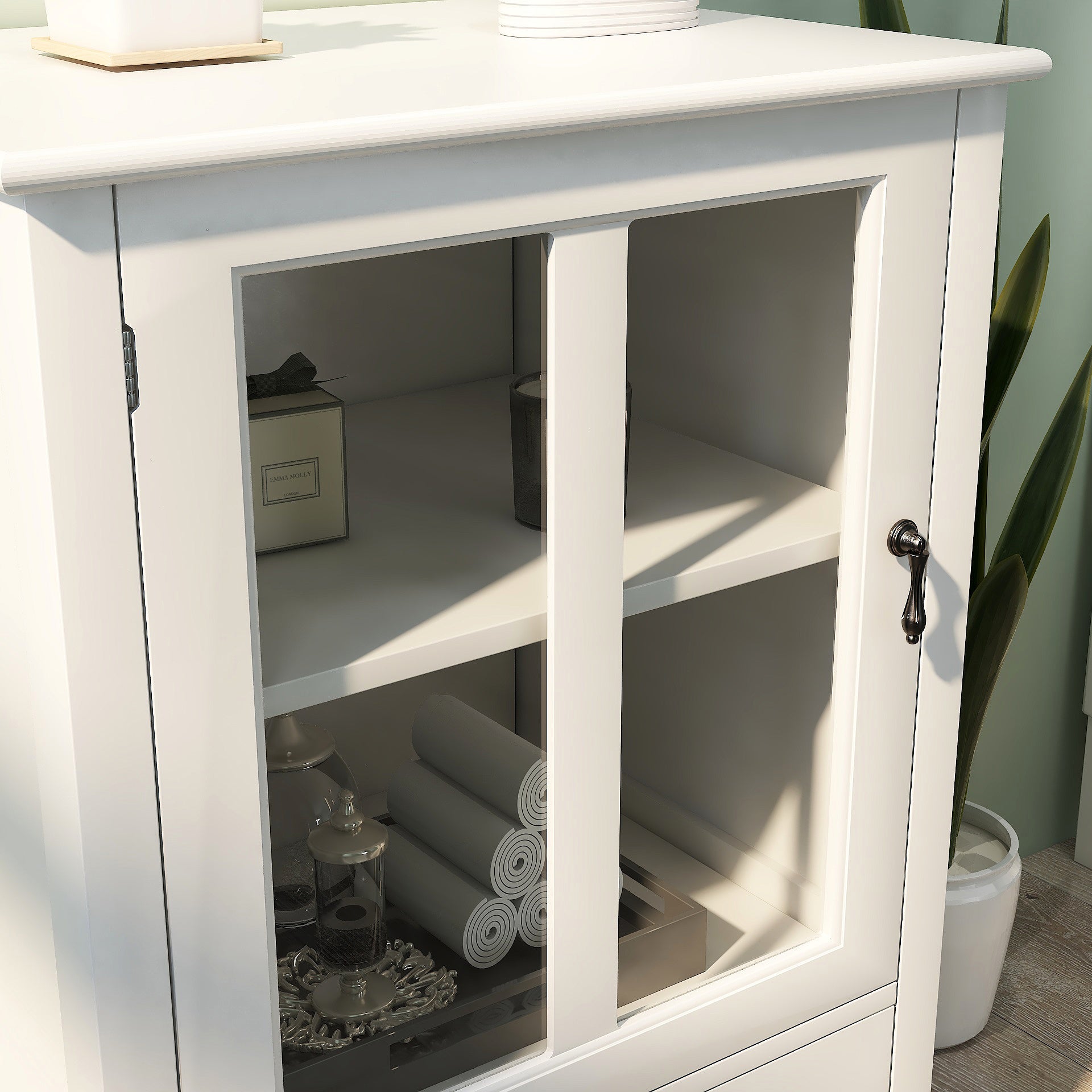 - Versatility:This cabinet can be used as a sideboard in living room to fill in your favourite collections, or a buffet server cabinet in kitchen to put the tableware, bowls and dishes.With the glass doors you can show off as well as protect they from dust.