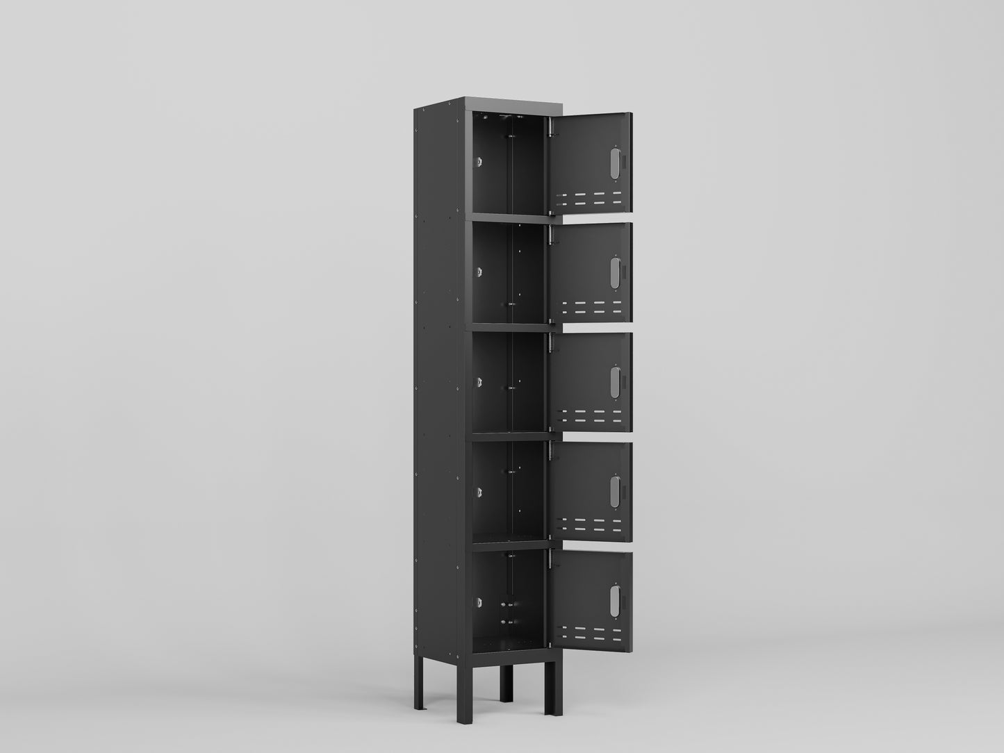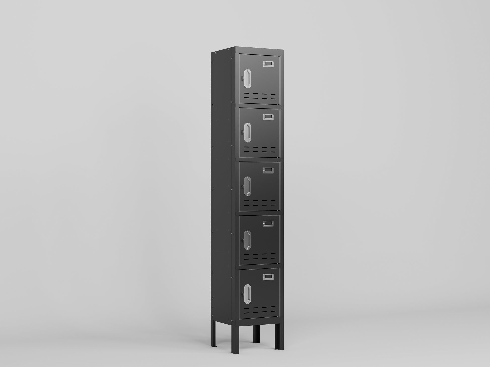 5 Door Tall Single Shelf Metal Storage Cabinet - Vintage Style Storage Cabinet - Industrial Furniture - For Living Room / Bedroom / Storage Room / Gym / School - Black