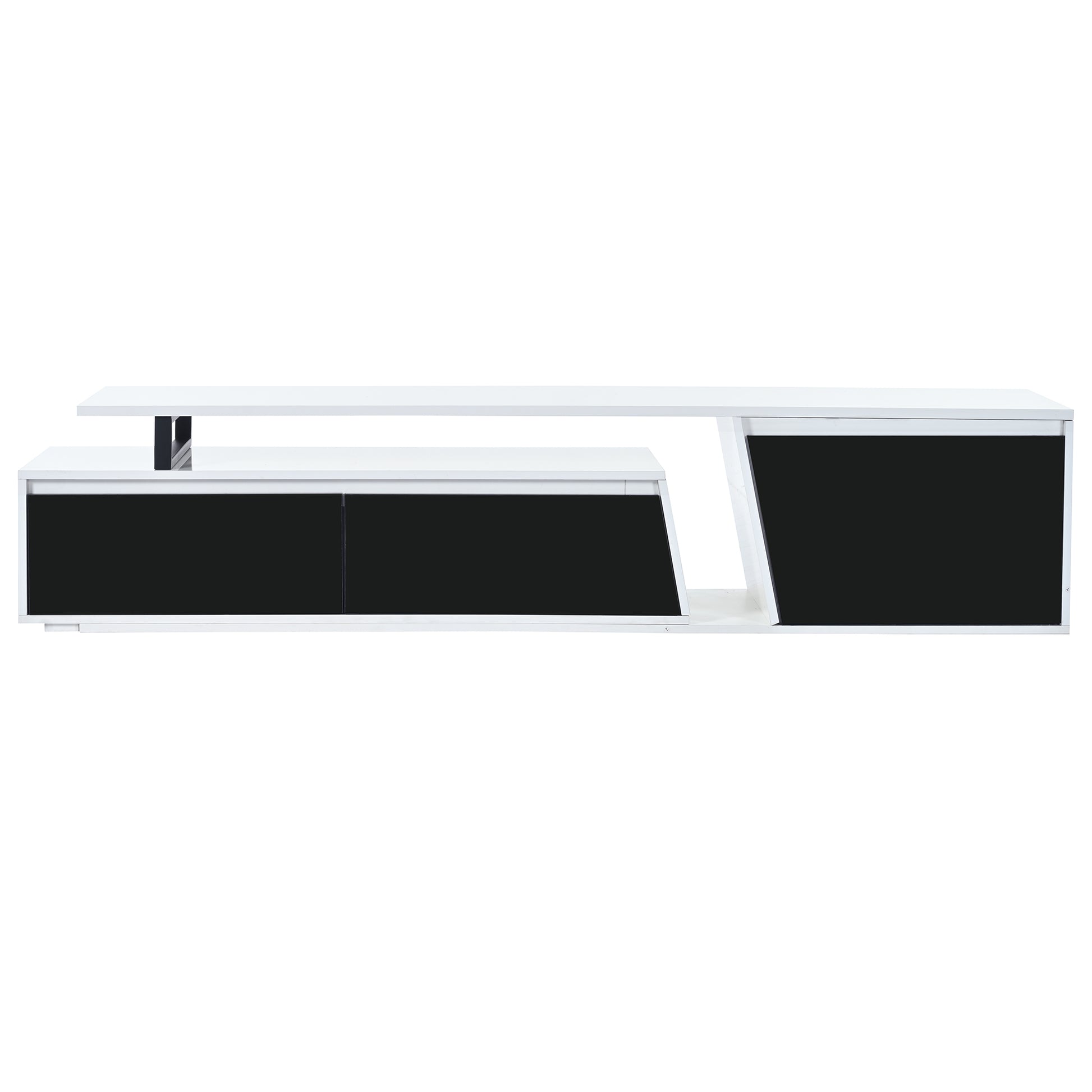 Inspired by the art of asymmetrical, this extendable contemporary TV stand is is definitely a highlight of your living room. It features two ample drawers and one cabinet to keep DVDs, magazines, blankets, toys or other essentials tidy. Made of high-quality particle board with high-glossy surface, this stylish TV is the perfect choice for your living room and bedroom. Can accommodate up to an 100-inch TV.