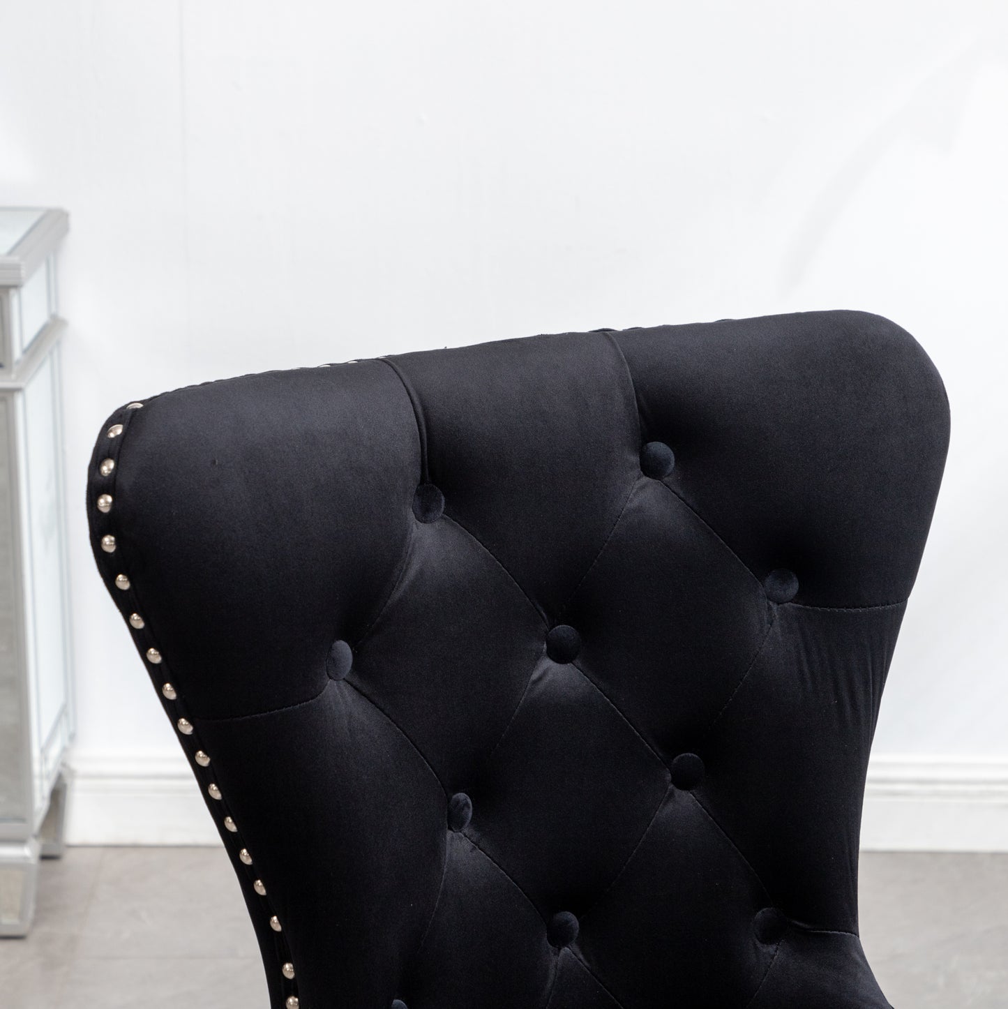 Montura Contemporary Tufted Velvet Chair with Nailhead Trim, Set of 2, Black