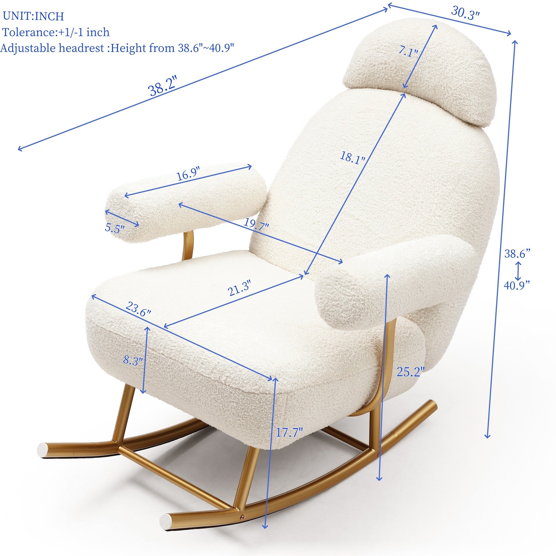 - Upholstered with premium breathable fluffy faux fur sherpa fabric,soft and skin-friendly. Modern unique design with golden rocking base make this rocker glider chair look warm,elegant and light luxury.