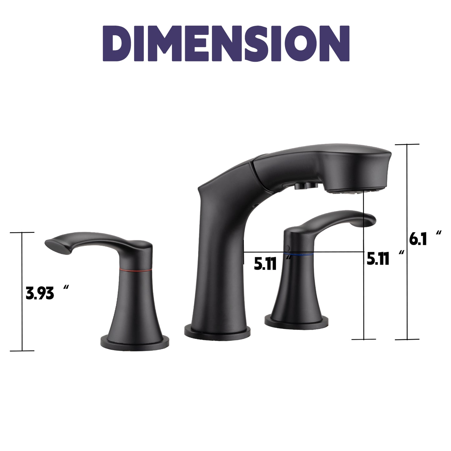 Widespread Pull Out Sprayer Bathroom Faucet, 2-handle Bathroom Sink Faucet
