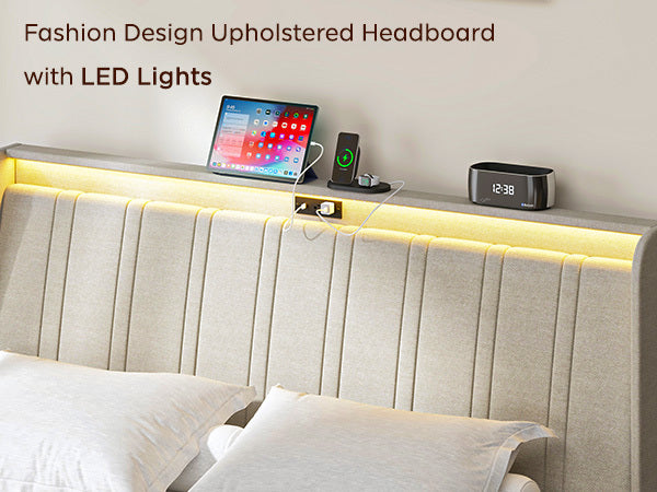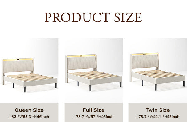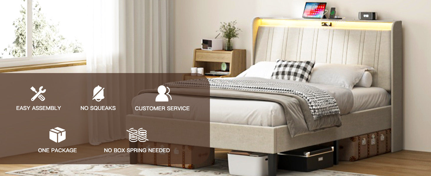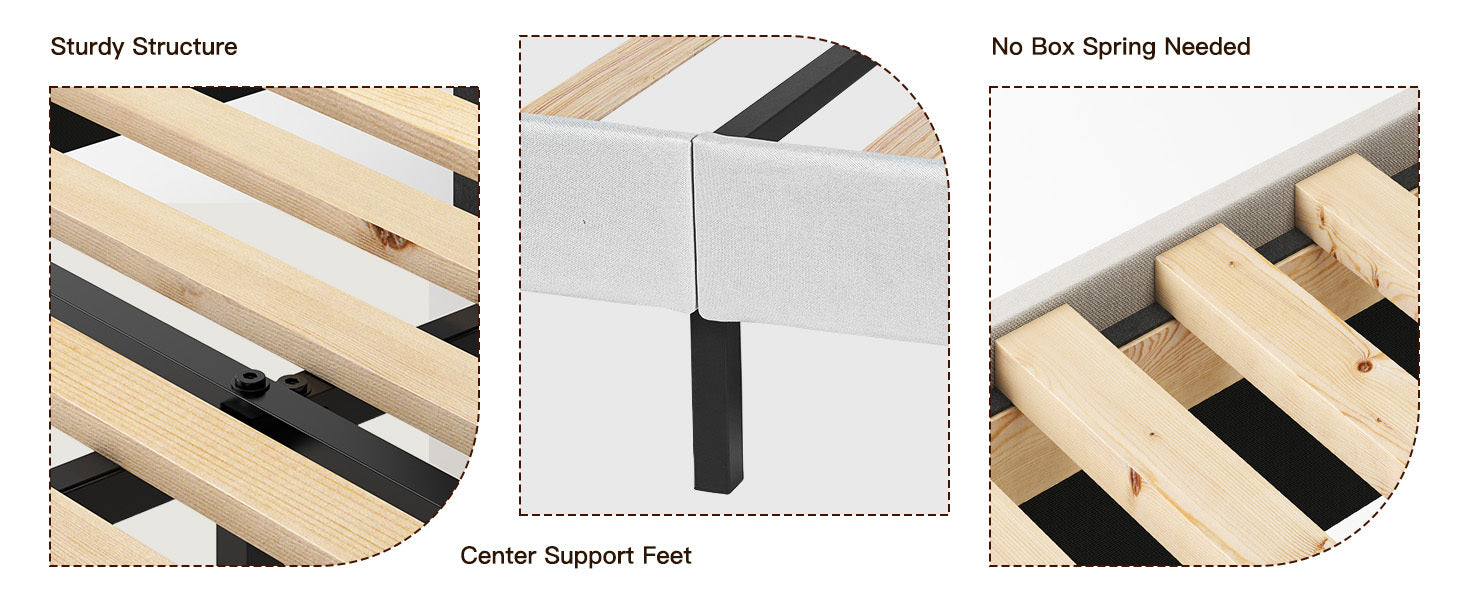 - Bed frame queen size with a padded upholstered headboard, suitable for various decors; EVA mute bar prevents noise from friction, no squeaking or creaking