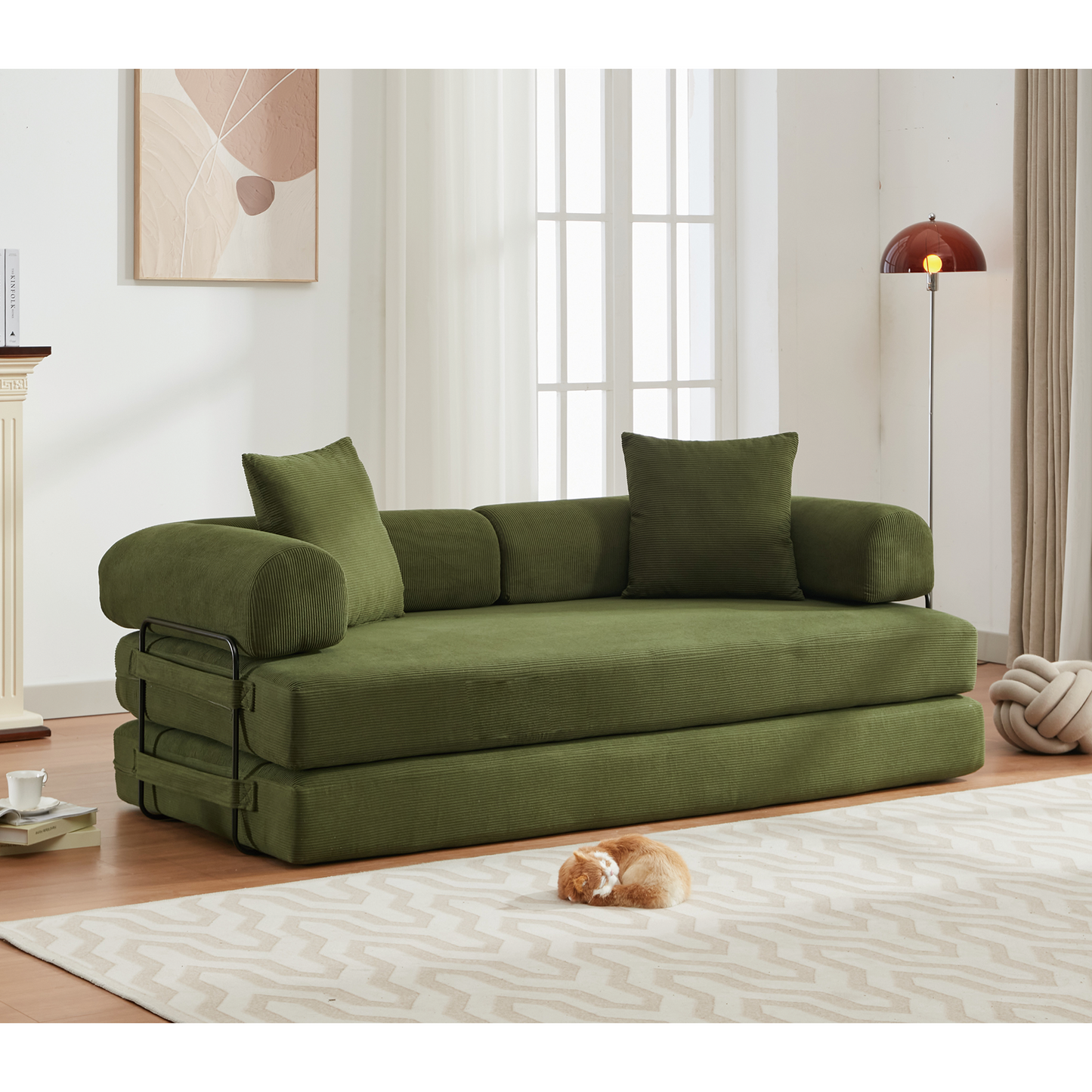 - 【Comfort Corduroy Fabric】Upholstered in Small Streak Corduroy fabric, oversized sleeper sofa offers a soft touch while providing a fuzzy and breathable texture. Corduroy fabric decorates your home with warmth and calmness, we also have two soft and cozy pillows for the ultimate in coziness, Warms you up every day!