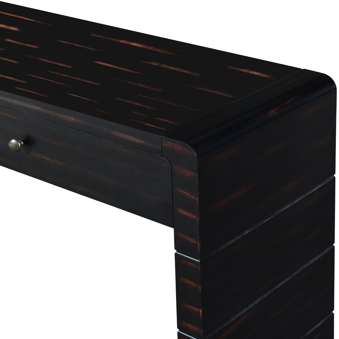 TREXM Curved Console Table with Storage, Wooden Entryway Table with 2 Drawers, Farmhouse Rustic Console Tables for Entryway, Hallway, Living Room, Distressed Black