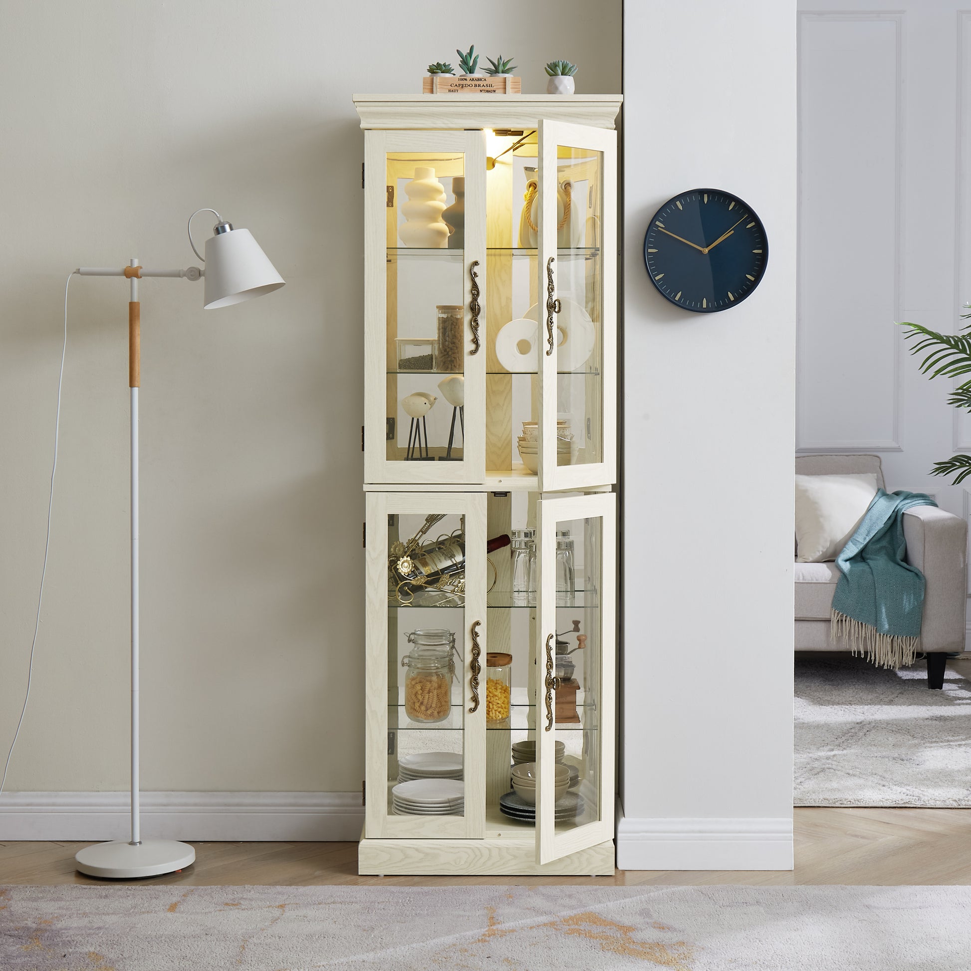 Lighted Glass Curio Display Cabinet,Display Cabinet,Glass Storage Cabinet Glass Wine cabinet Wood Frame Toy Display for Living Room, Kitchen, Pantry light bulb included Antique white