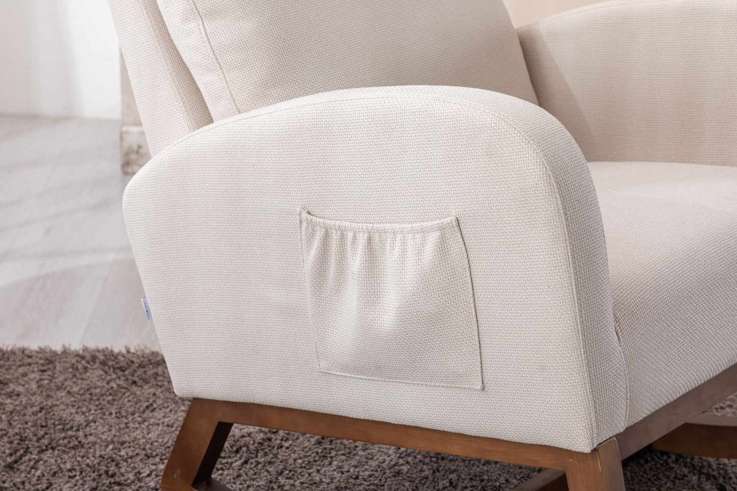 Rocking Chair, Modern Glider Chair, Recliner Armchair with Wood Legs and Side Pocket, Nursery Rocking Accent Chair with High Back for Living Room Bedroom (Beige linen)