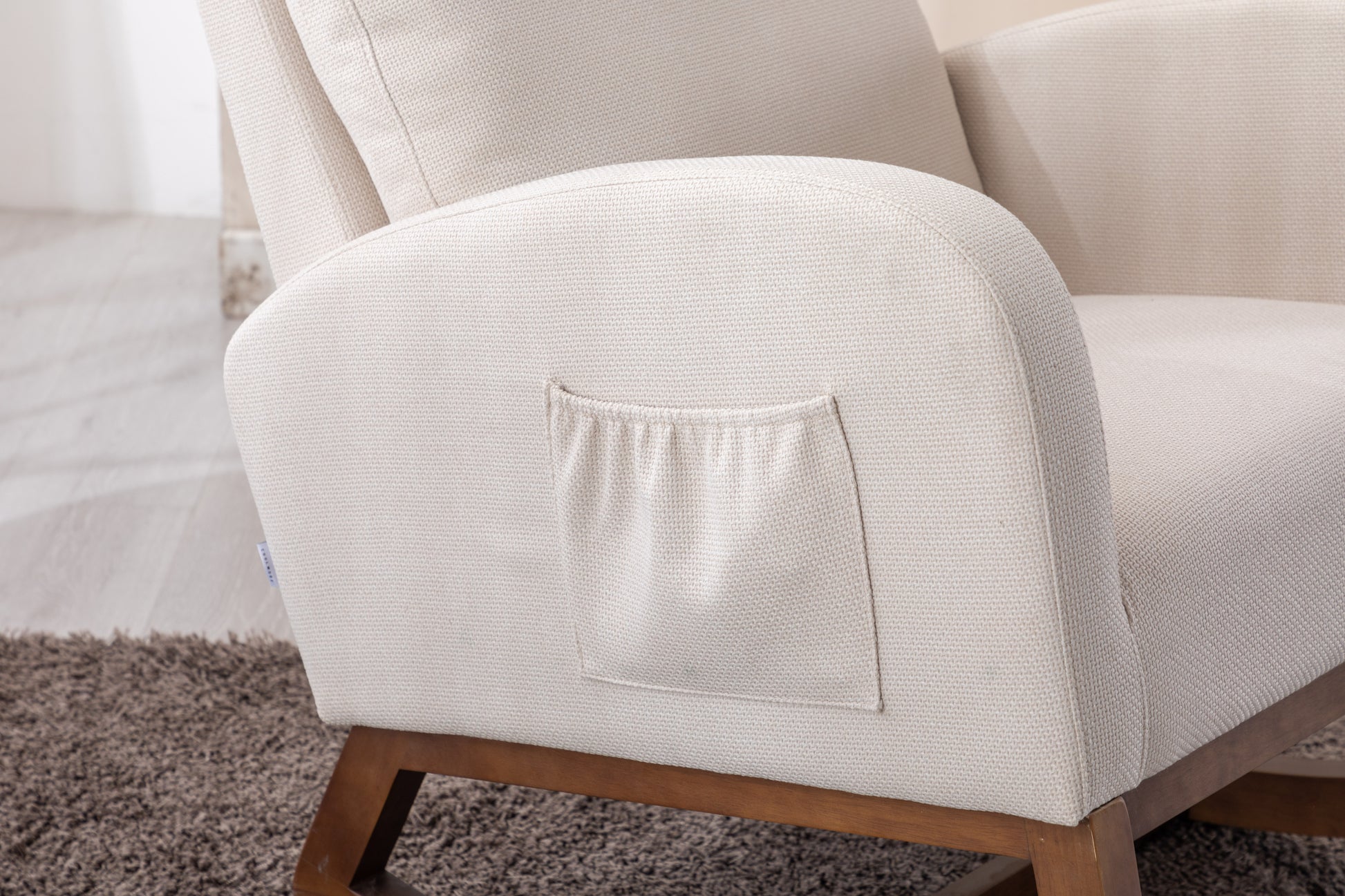 - With a combination of elegant appearance and rocking function, this fabric accent chair is ideal for living rooms, nurseries, bedrooms, study rooms and any other room in your house.