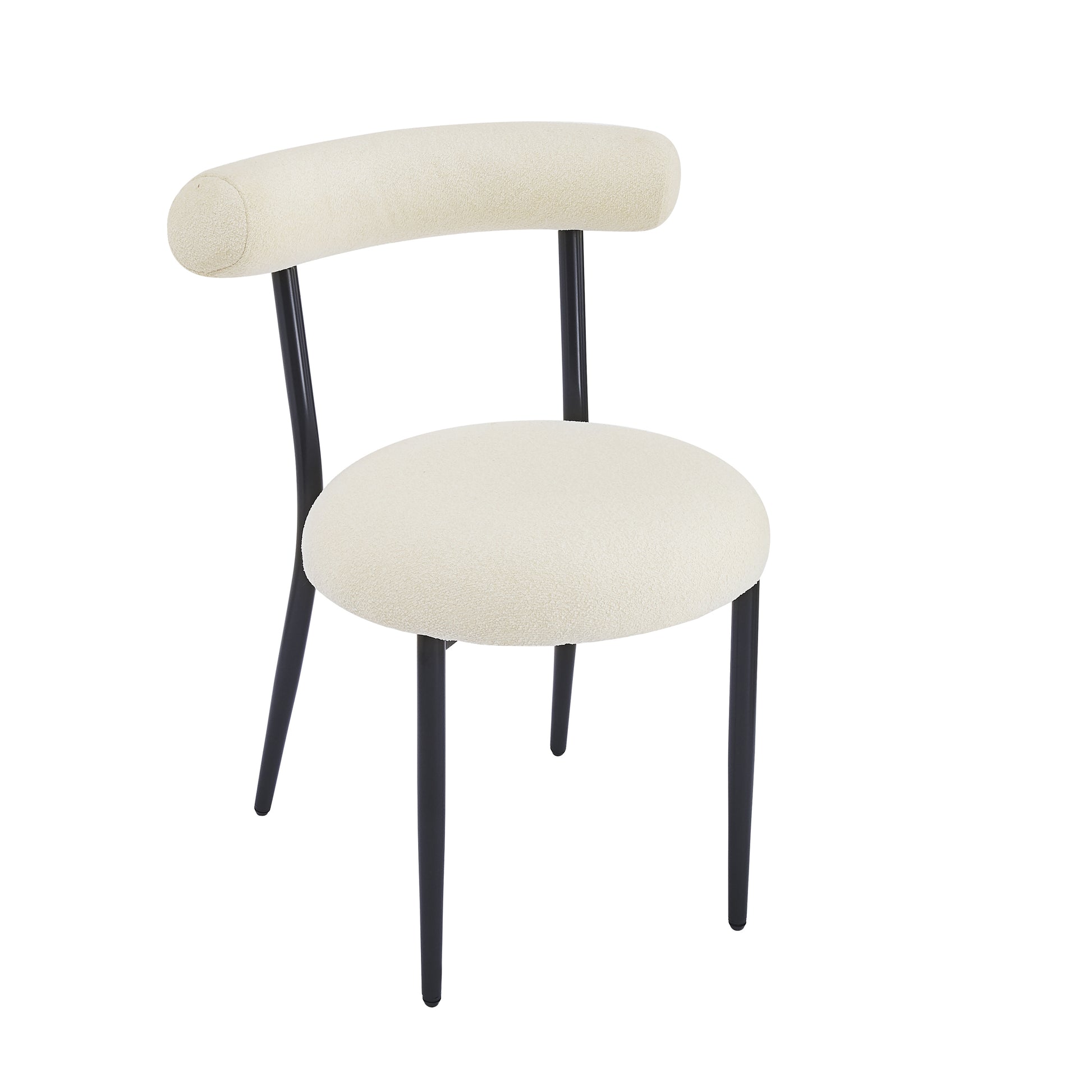 Dining Chair Set of 2, Modern Dining Room Chairs, Black Metal Frame, White Fabric