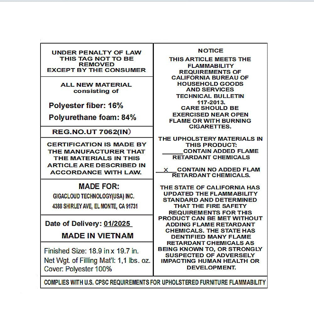 | Seat Dimensions | 19.5”W x 18.5”D |
