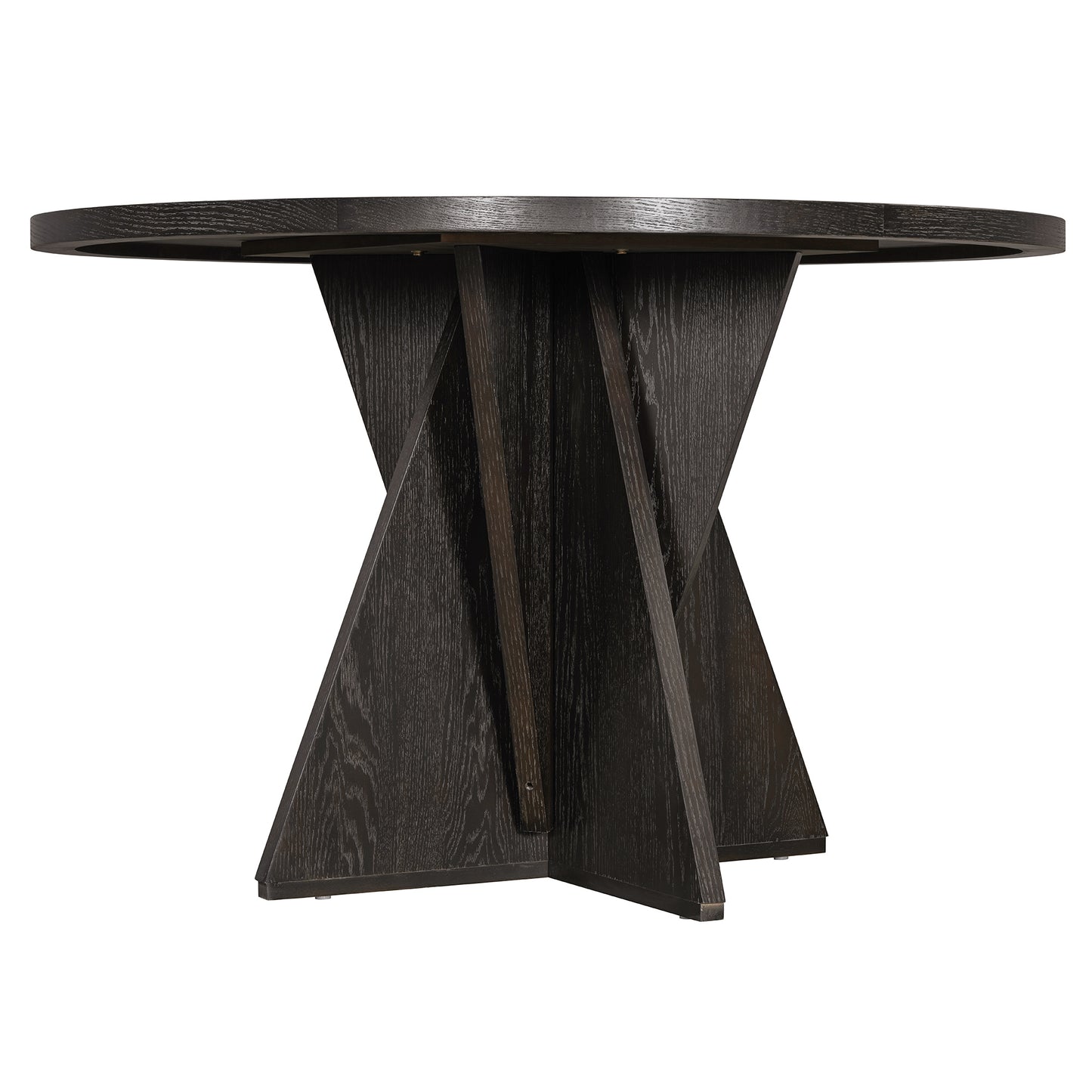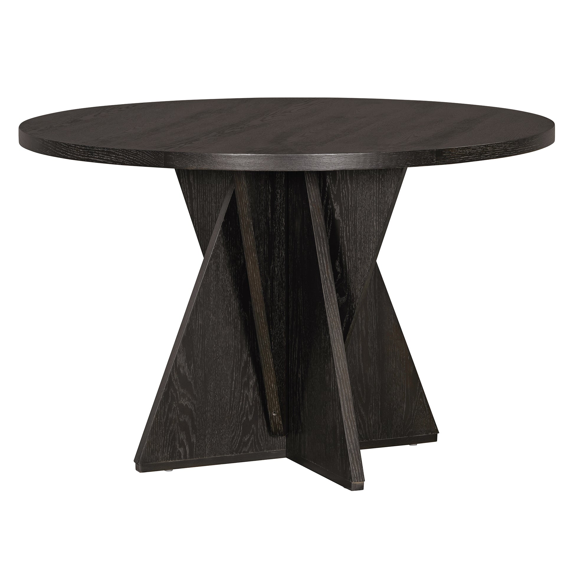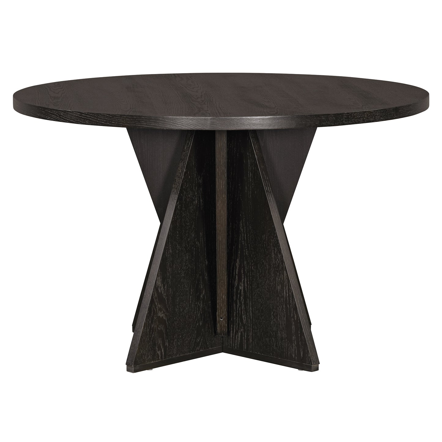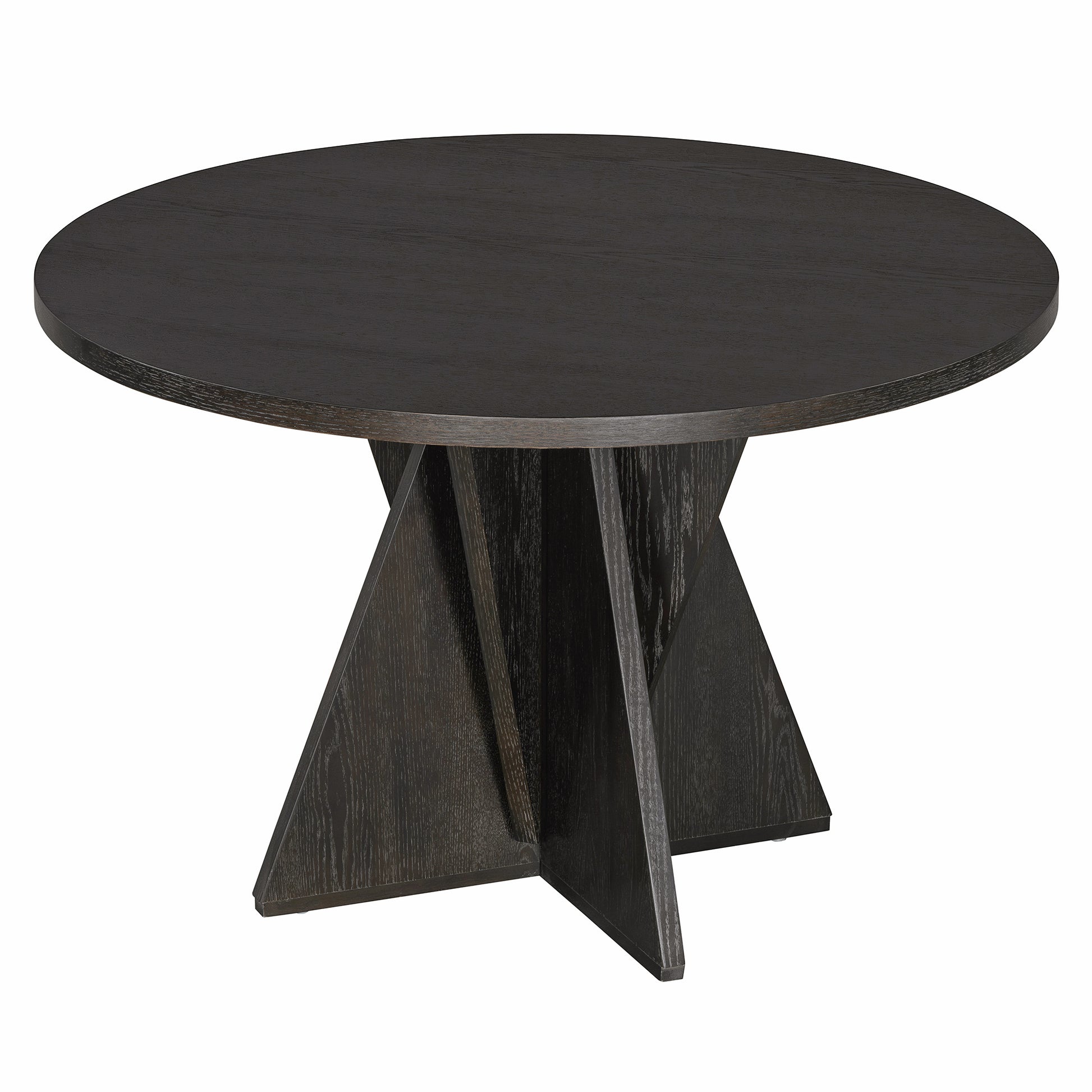 This round wood dining table combines style and stability with an origami-inspired base with triangular panels meeting at the center in a unique shape, enhancing structural support while adding a unique aesthetic. The spacious tabletop comfortably accommodates 4 people, making it a great choice for family meals, coffee breaks, or social gatherings. The smooth wood-grain veneer is easy to clean, ensuring lasting beauty in everyday use.