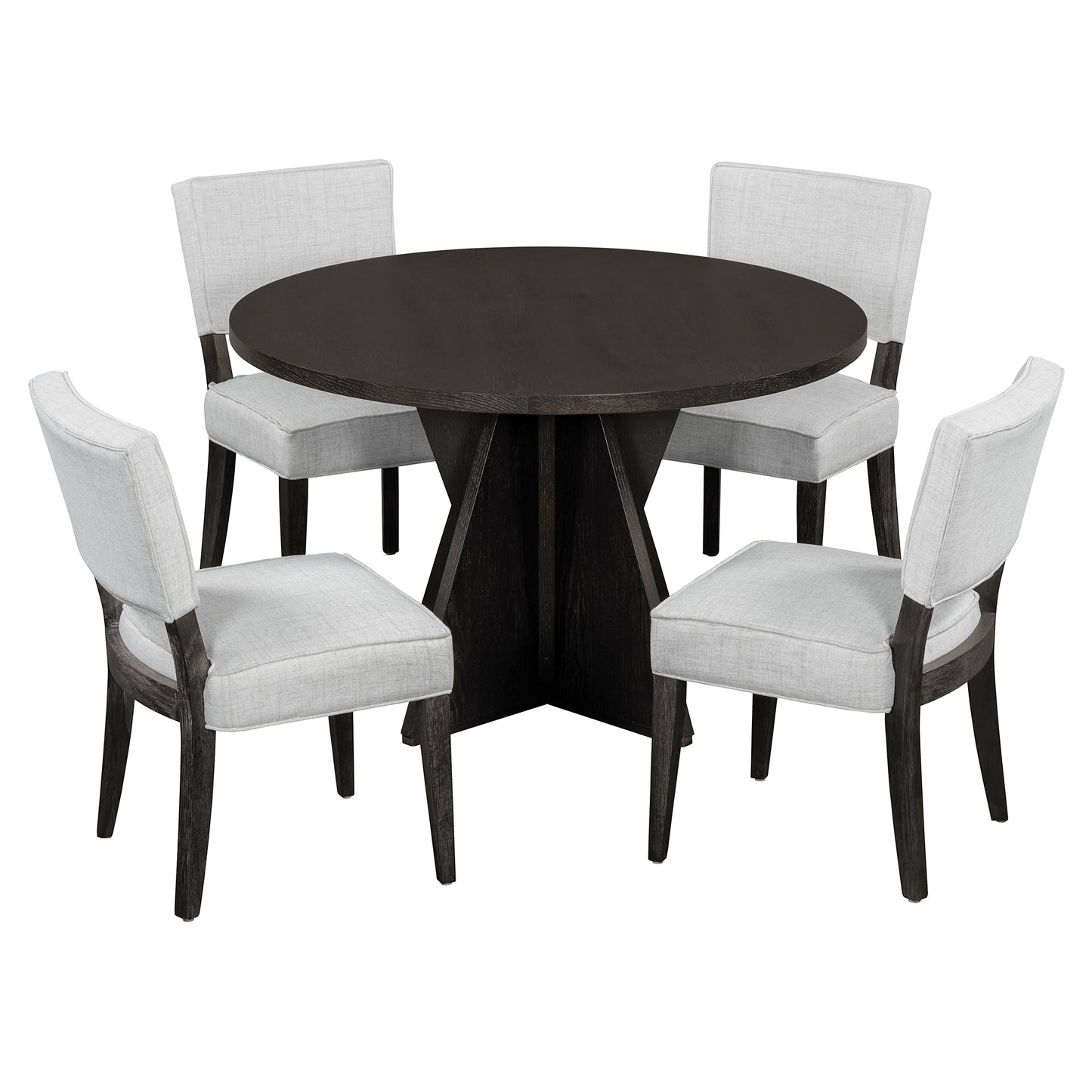 TREXM 5-Piece Round Dining Table Set for 4, Retro Kitchen Table and Chairs Set of 4 with Designed Base, Wood Dining Table with 4 Upholstered Chairs for Small Space and Dining Room (Espresso)