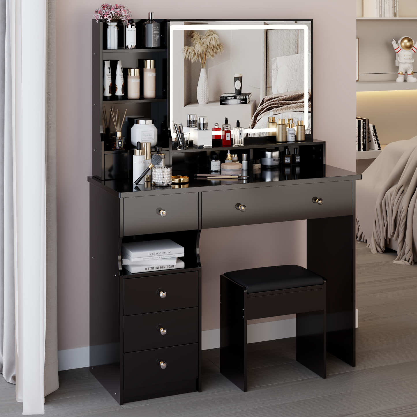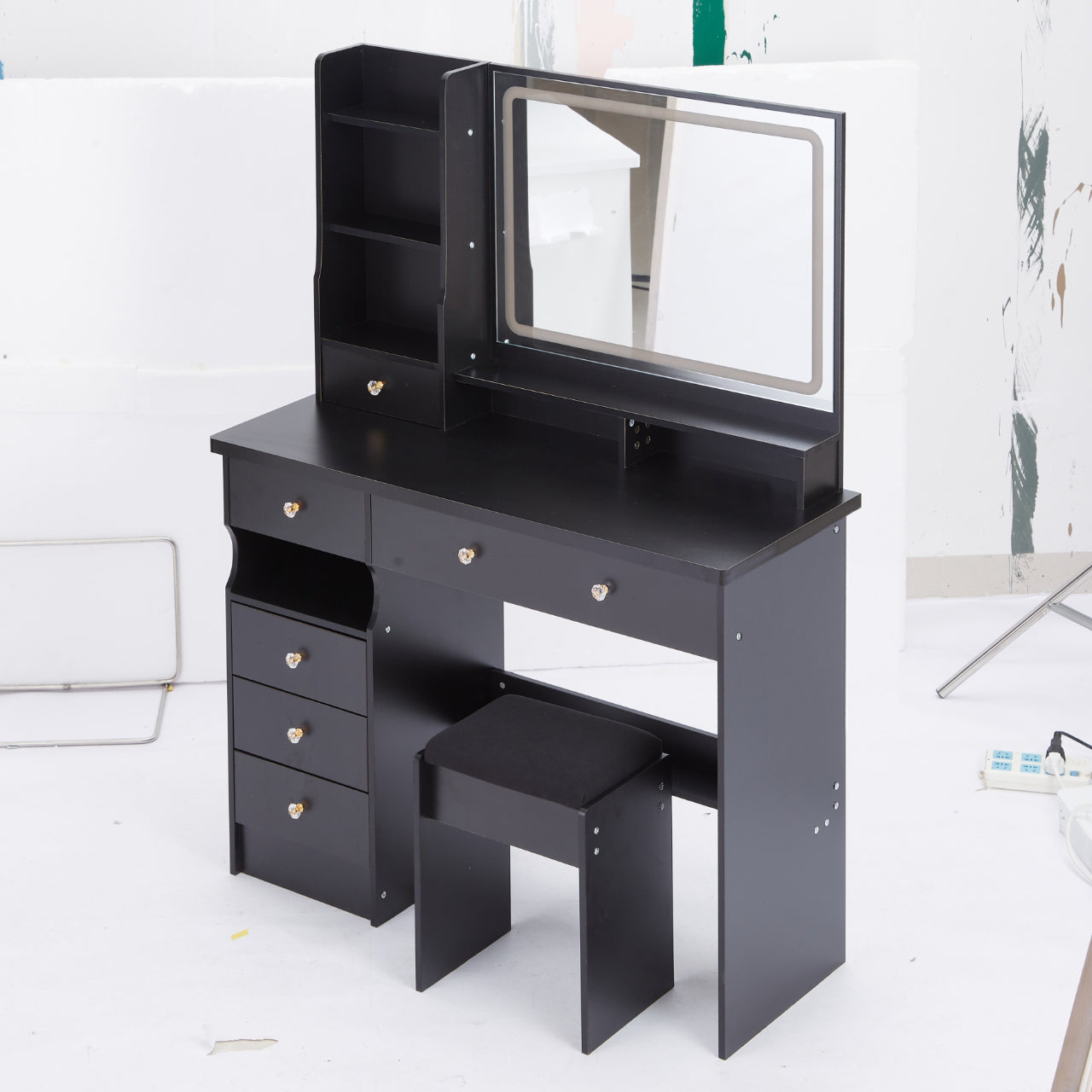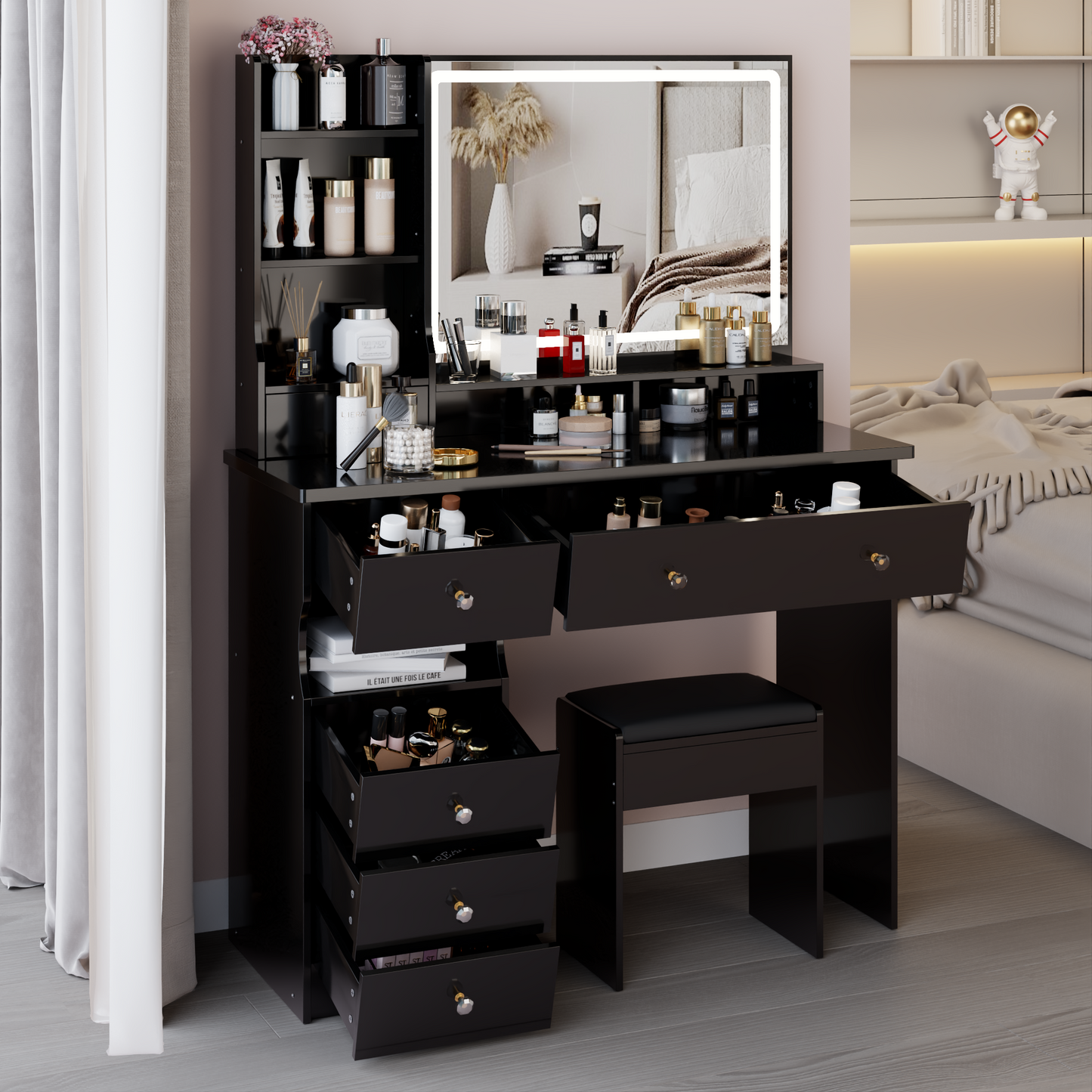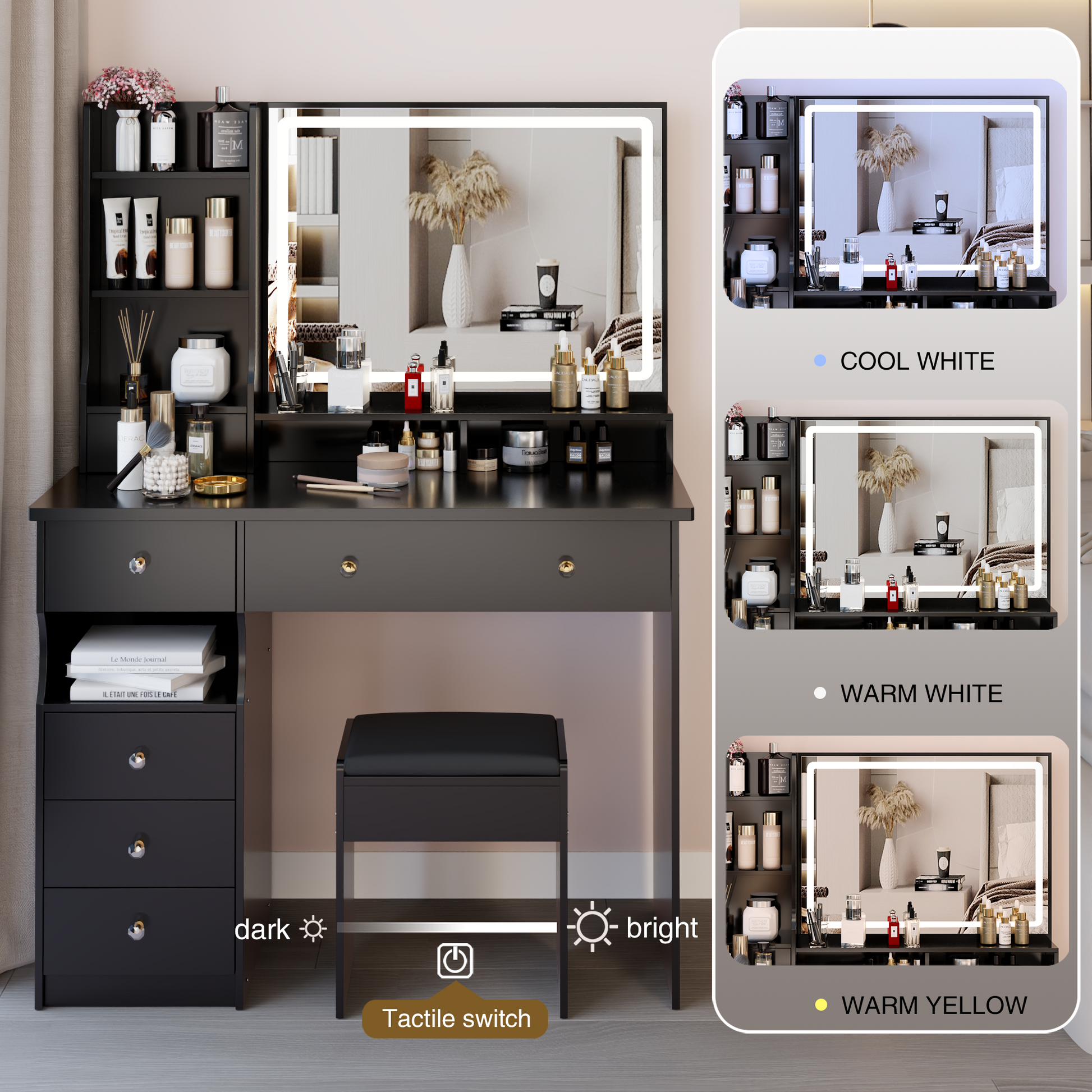 41' Large Size Left Drawer Desktop Vanity Table+Cushioned Stool, Extra Large Touch Control LED Mirror, 3-color Switch, Multi Layer High Capacity Storage Fashionable Dresser, Suitable For Large Space