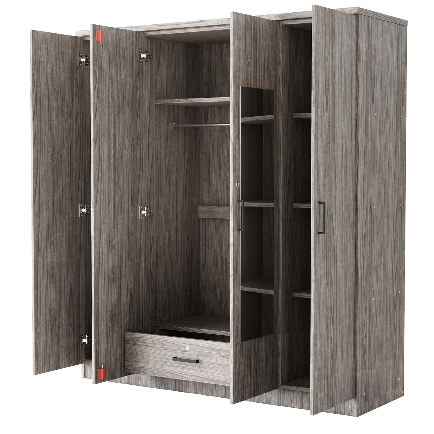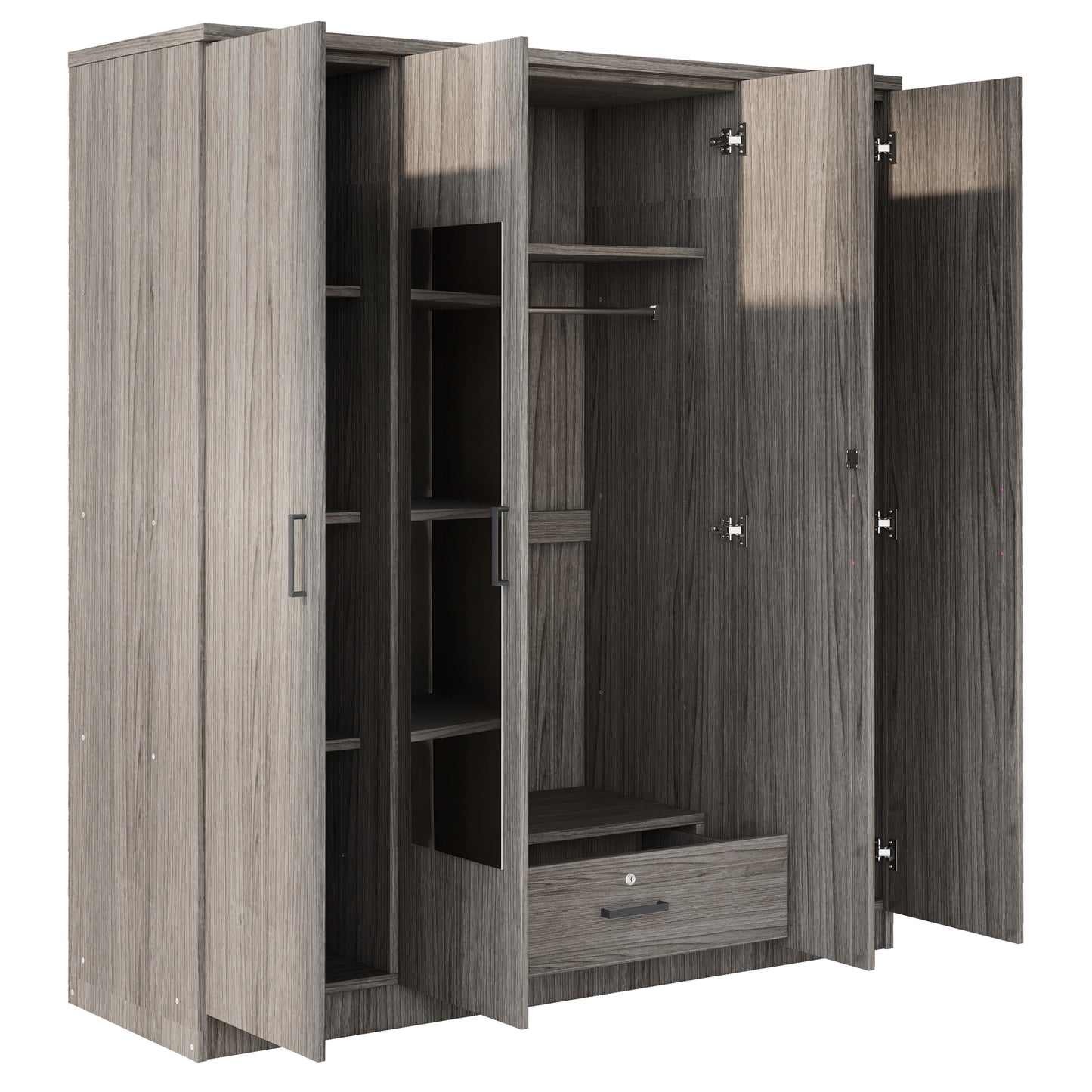 4-Door Mirror Wardrobe with shelves, Gray