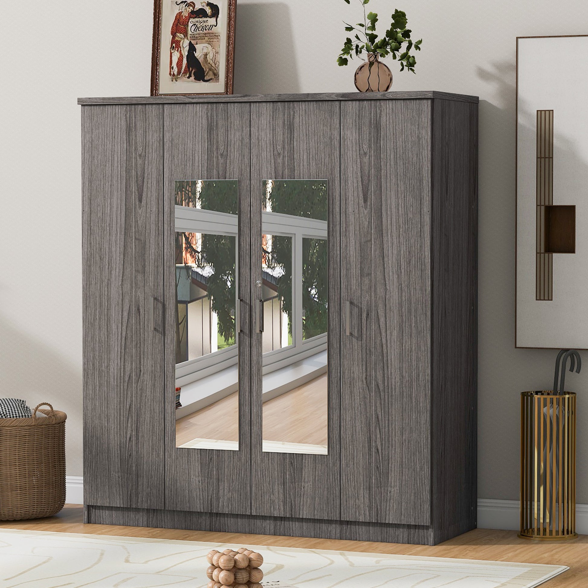 - 2.Built-in Dressing Mirror: The central features two convenient full-length dressing mirrors, allowing you to effortlessly check your appearance before heading out.
