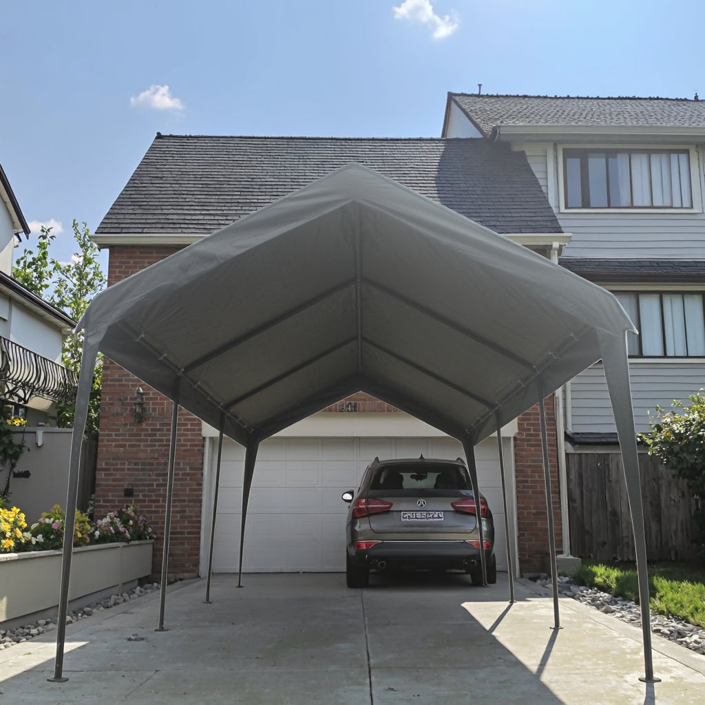 - Durable and Stable Structure: The carport features a stable frame supported by 8 legs, with steel tubes of 1.5 inches and 1.65 inches in diameter that are plastic powdered to prevent rust, chipping and corrosion.