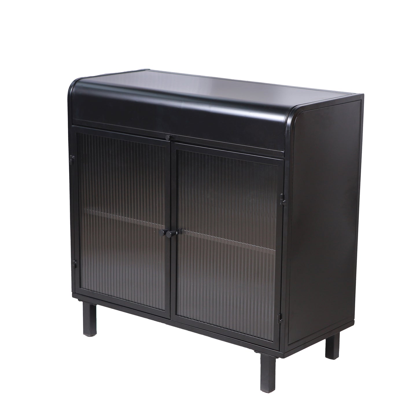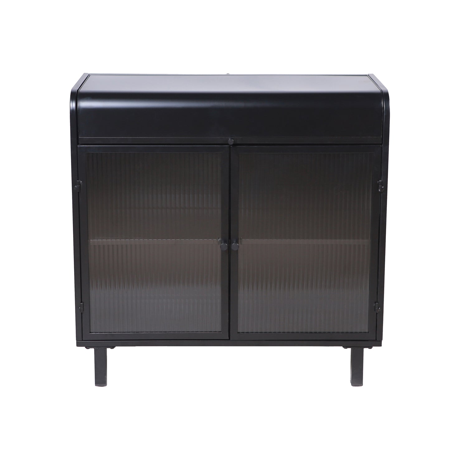 Modern Sideboard Buffet Cabinet with Tempered Figured Glass Doors, Flip Top, Inner Shelves, Metal Frame Storage Console for Dining Room, Kitchen, Living Room & Entryway (Black)