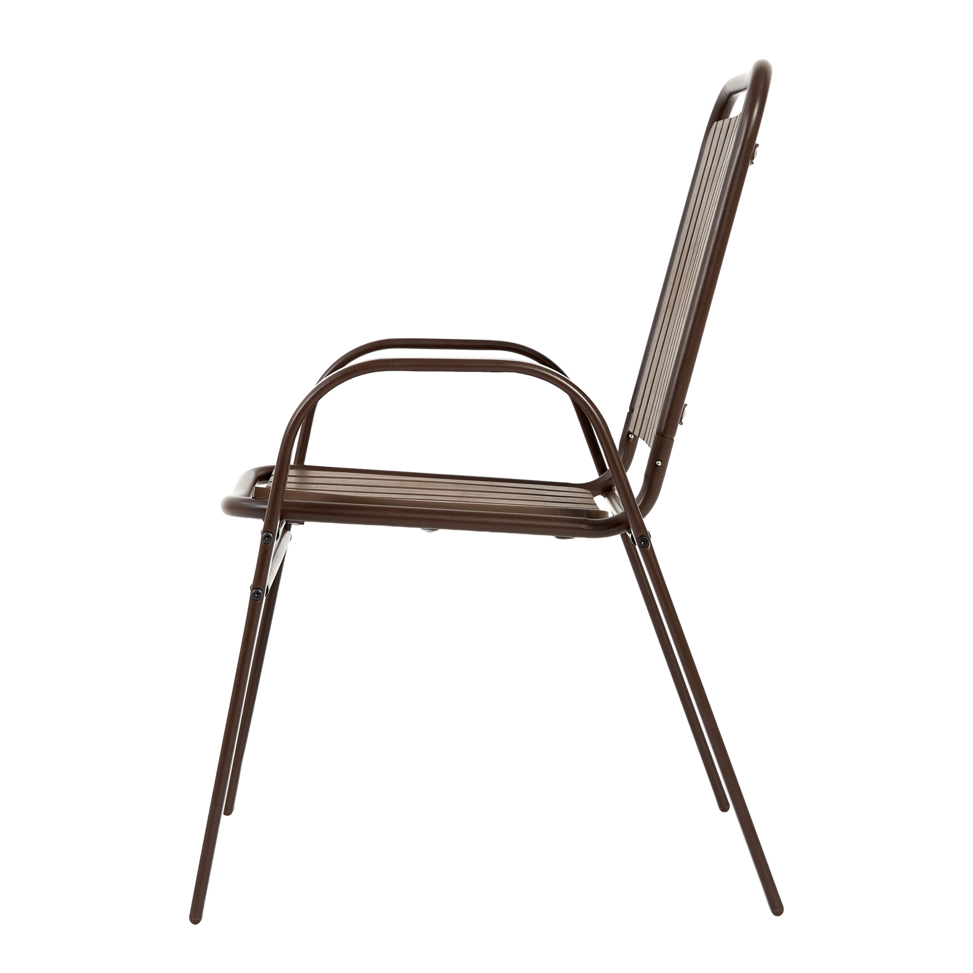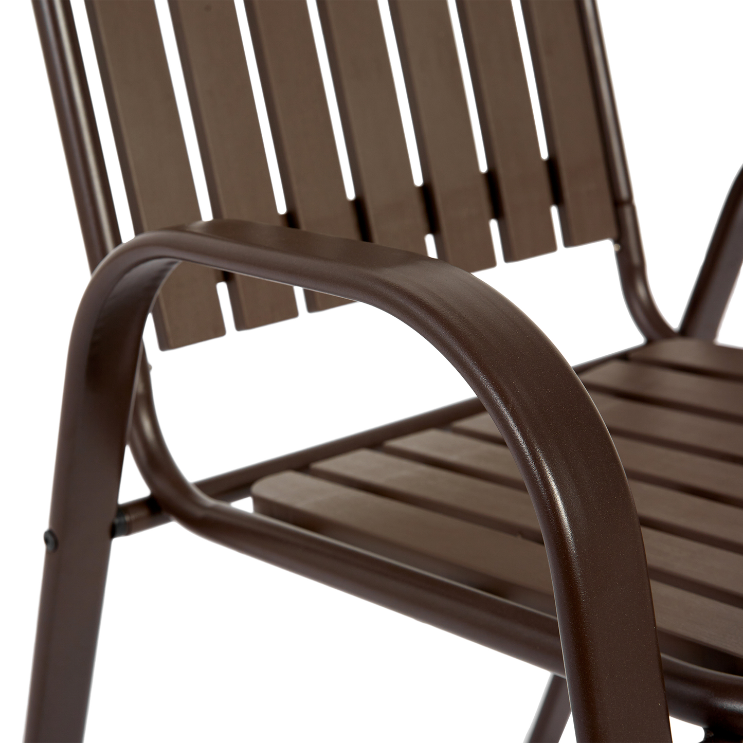 7 Pieces Patio Dining Set, Plastic chair and steel table Outdoor Set, plastic Chairs and Table Set for Garden Patio, Brown