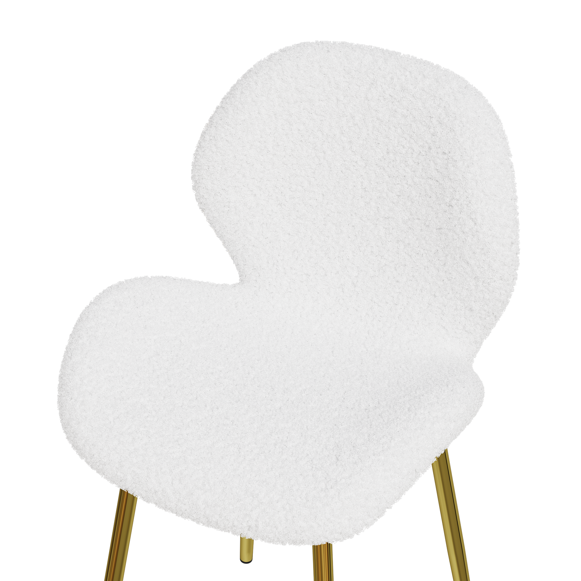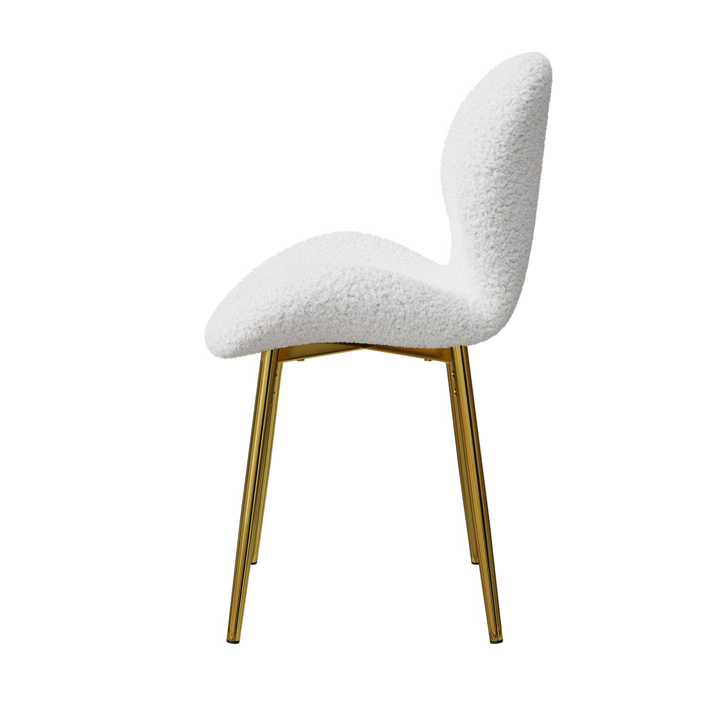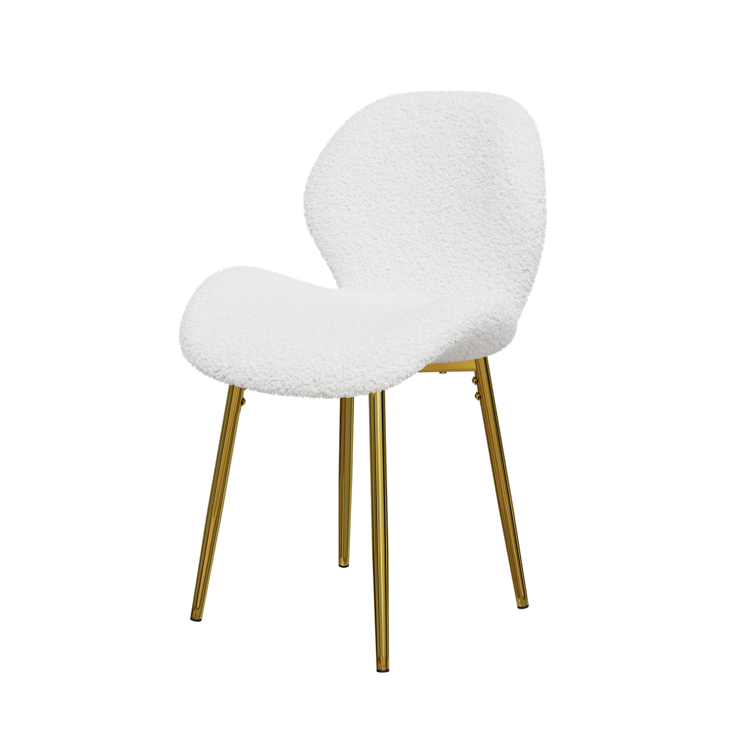 Modern minimalist white teddy velvet Dining Chairs Set of 2 with sturdy gold metal legs and comfortable backrest design, suitable for restaurants, kitchens, and offices.