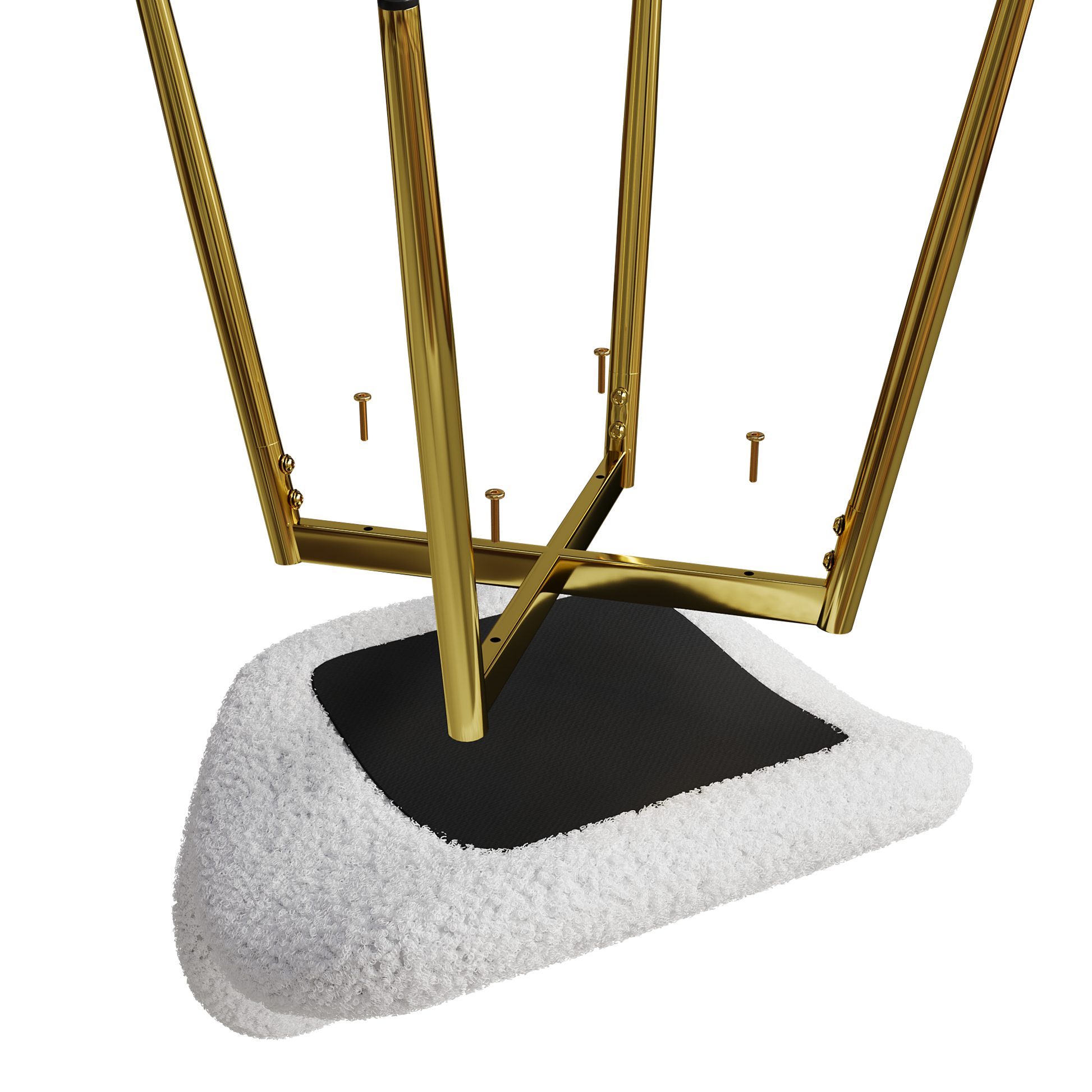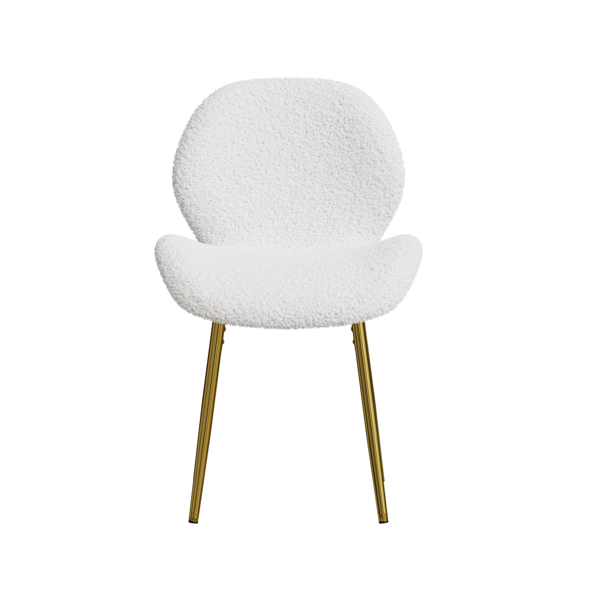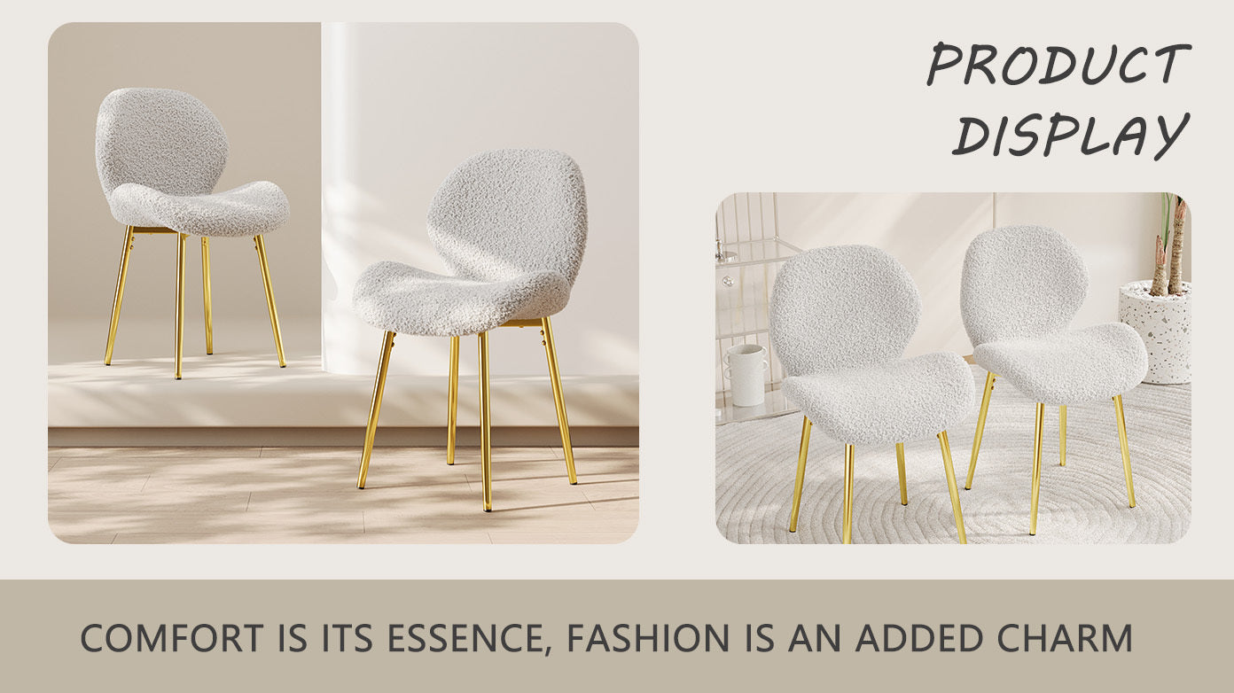 Modern minimalist white teddy velvet Dining Chairs Set of 2 with sturdy gold metal legs and comfortable backrest design, suitable for restaurants, kitchens, and offices.