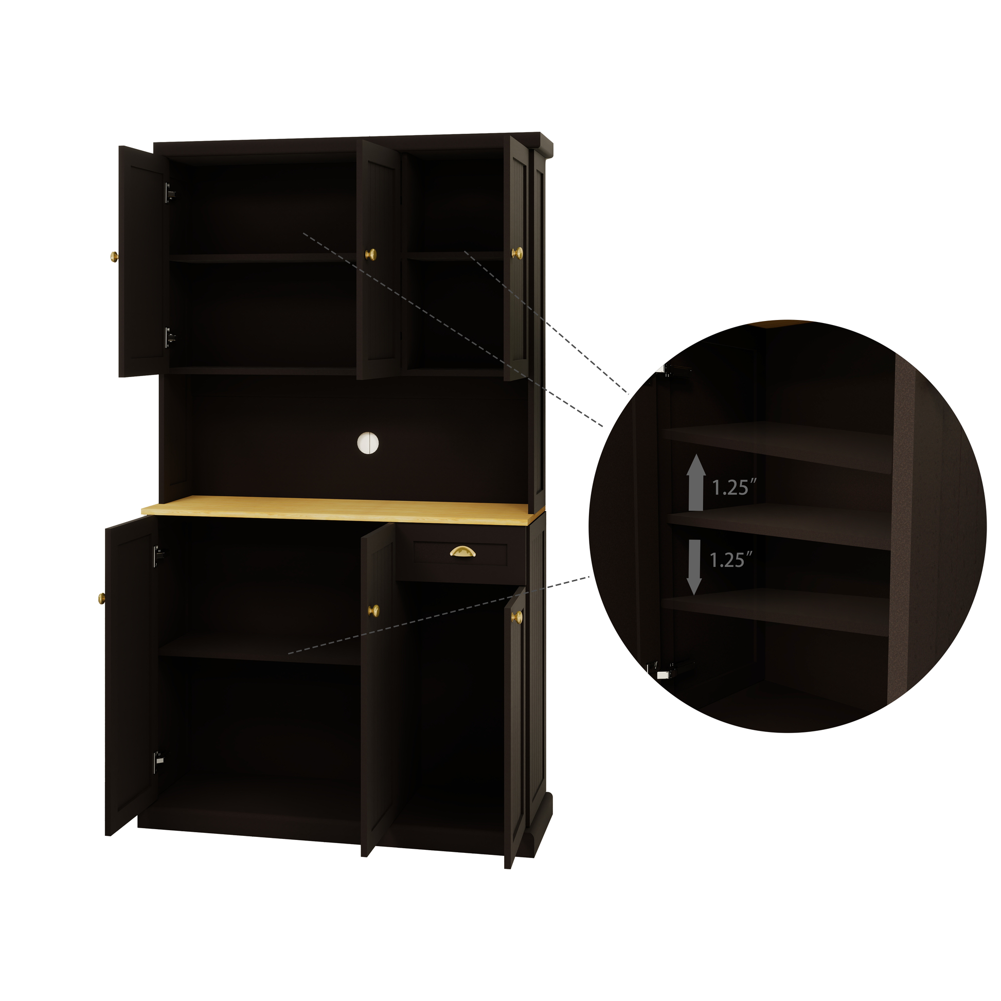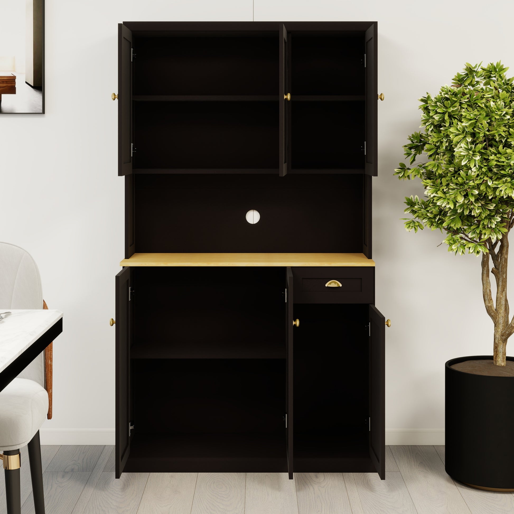 71' Kitchen Pantry Storage Cabinet with Microwave Oven Countertop, Freestanding Hutch Cabinet with Adjustable Shelves, 6 Doors and 1 Drawer-Black