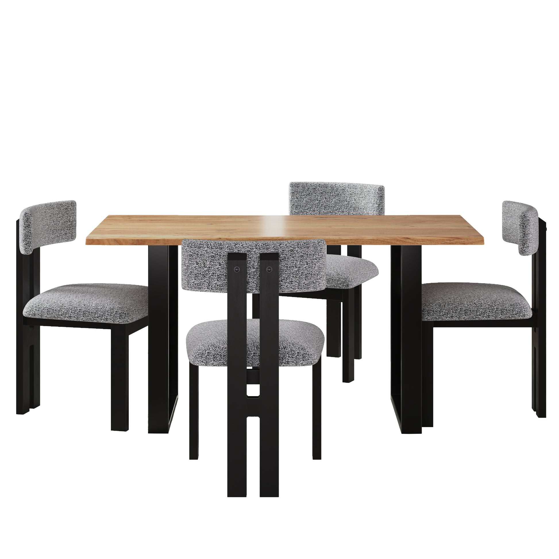 Mid-Century 5-Piece Dining Set with Upholstered Metal Leg Chairs and Solid Wood Top Table in Black, White, and Natural Finish