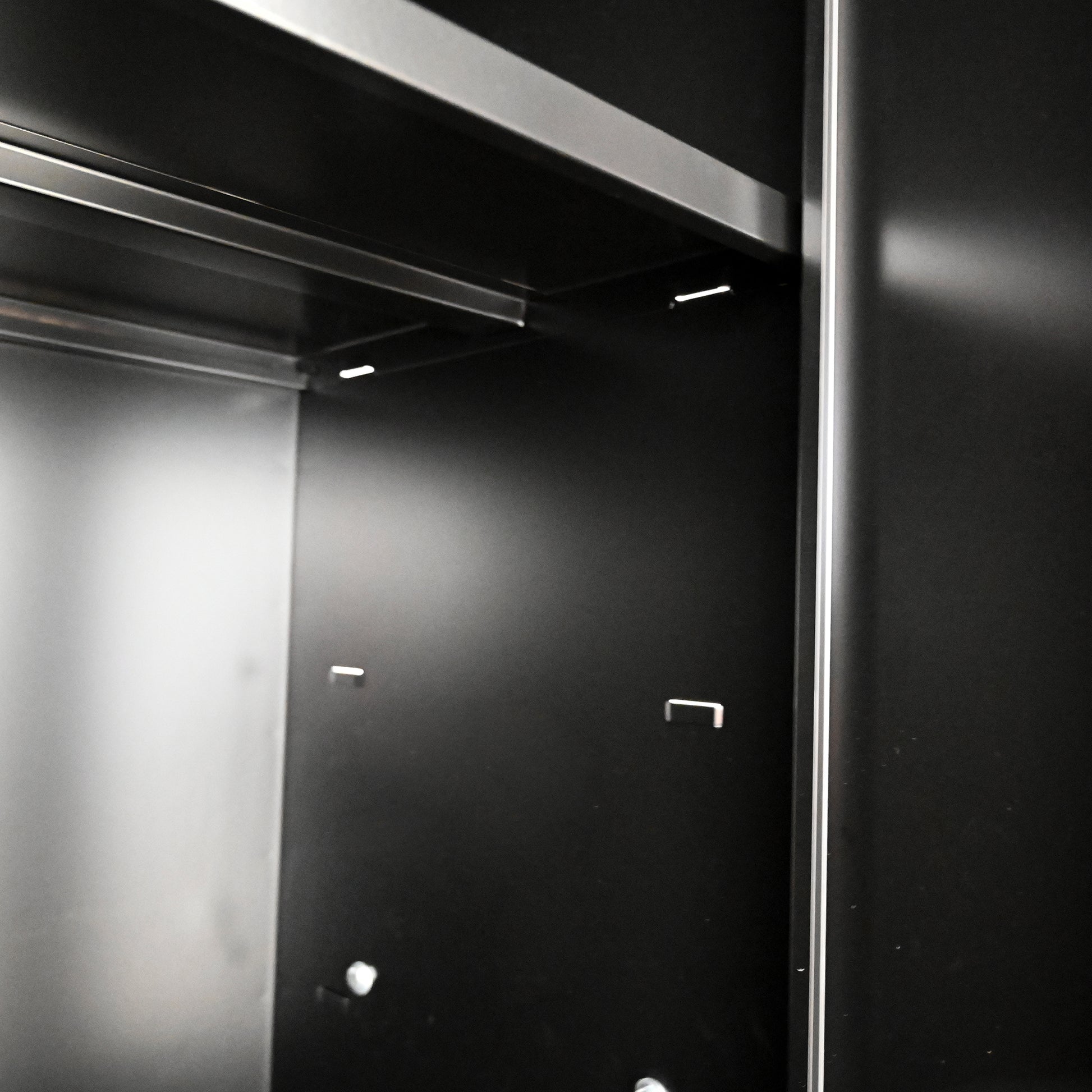 The adjustable door panels that can be freely combined are well-suited for various storage arrangements.