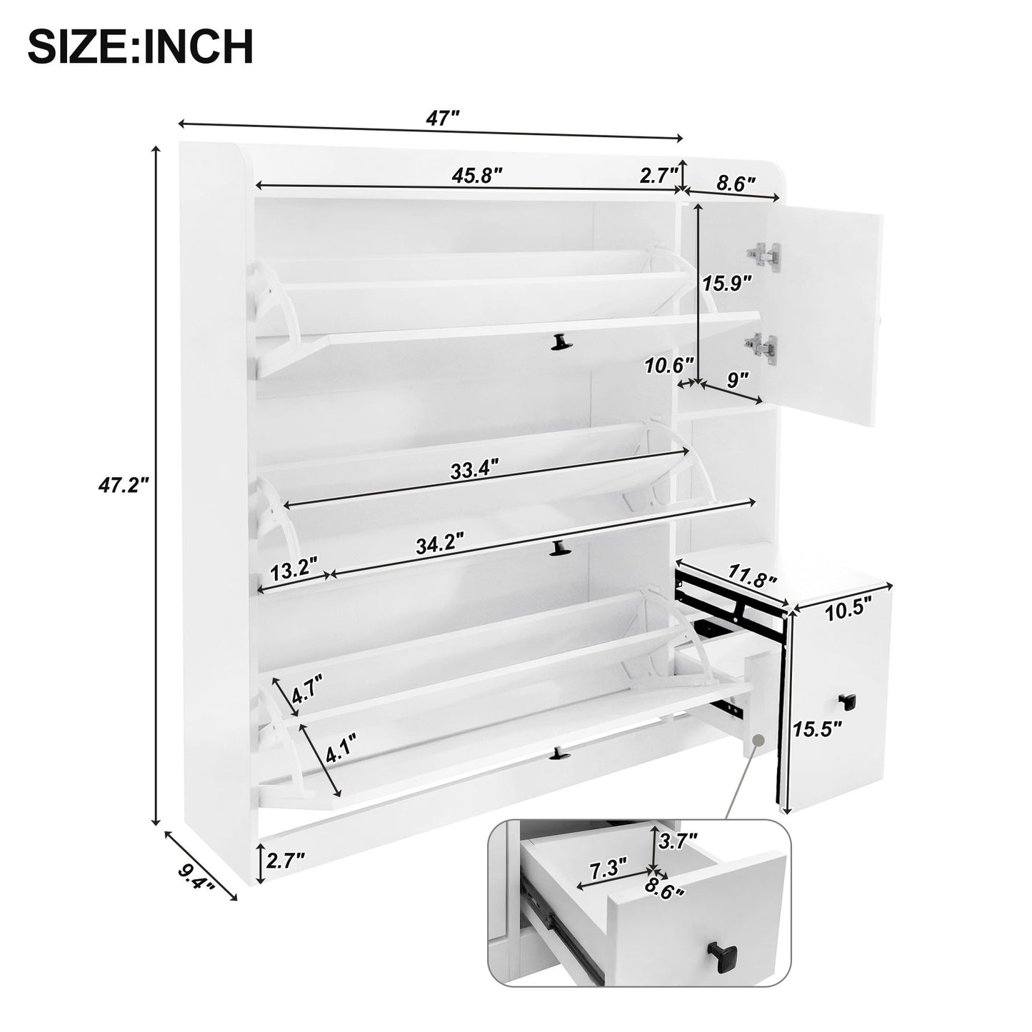 - It also boasts exceptional storage capabilities with 3 flip drawers that equipped with adjustable shelves, allowing for the storage of 24 pairs of shoes.