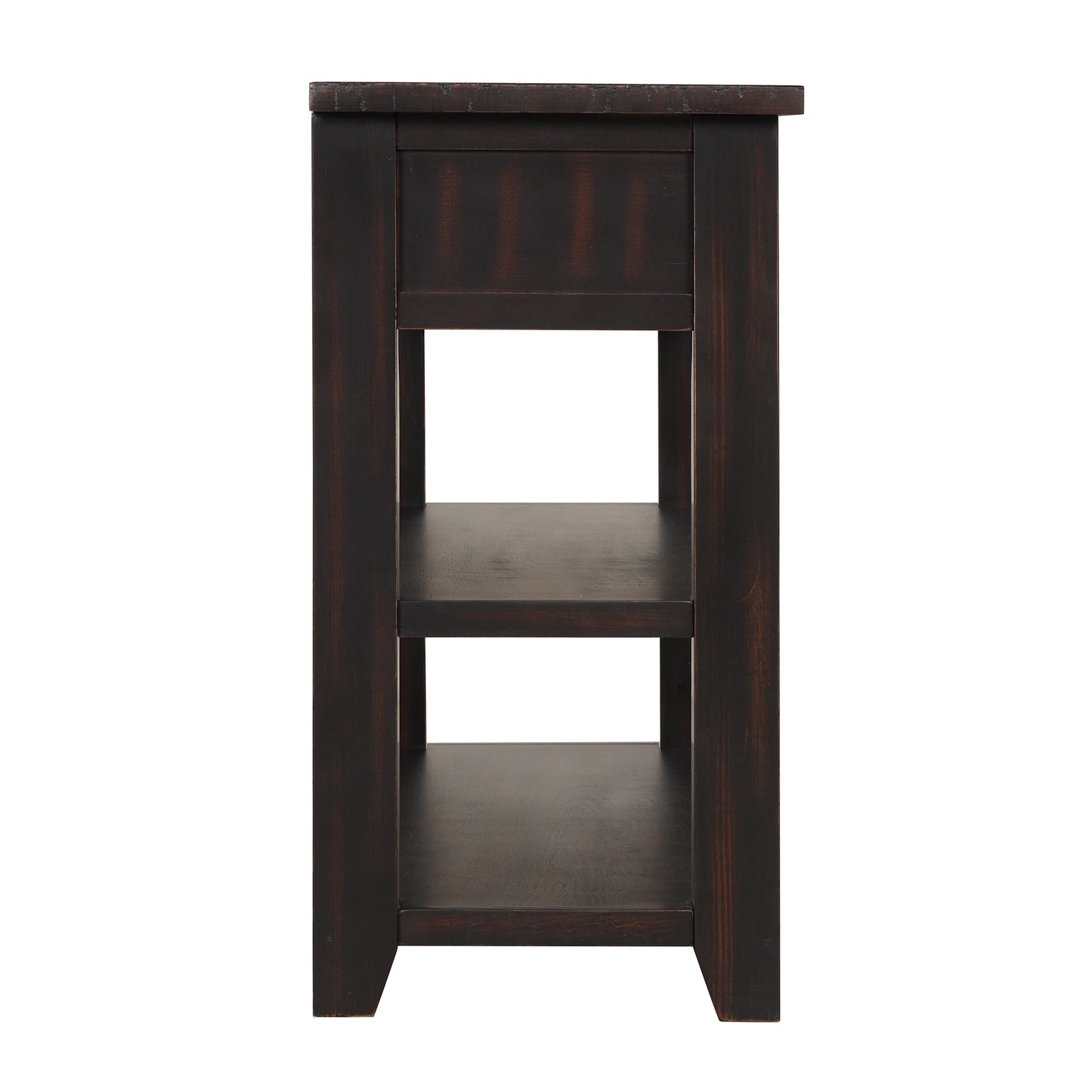 48'' Solid Pine Wood Top Console Table, Modern Entryway Sofa Side Table with 3 Storage Drawers and 2 Shelves. Easy to Assemble (Distressed Black)